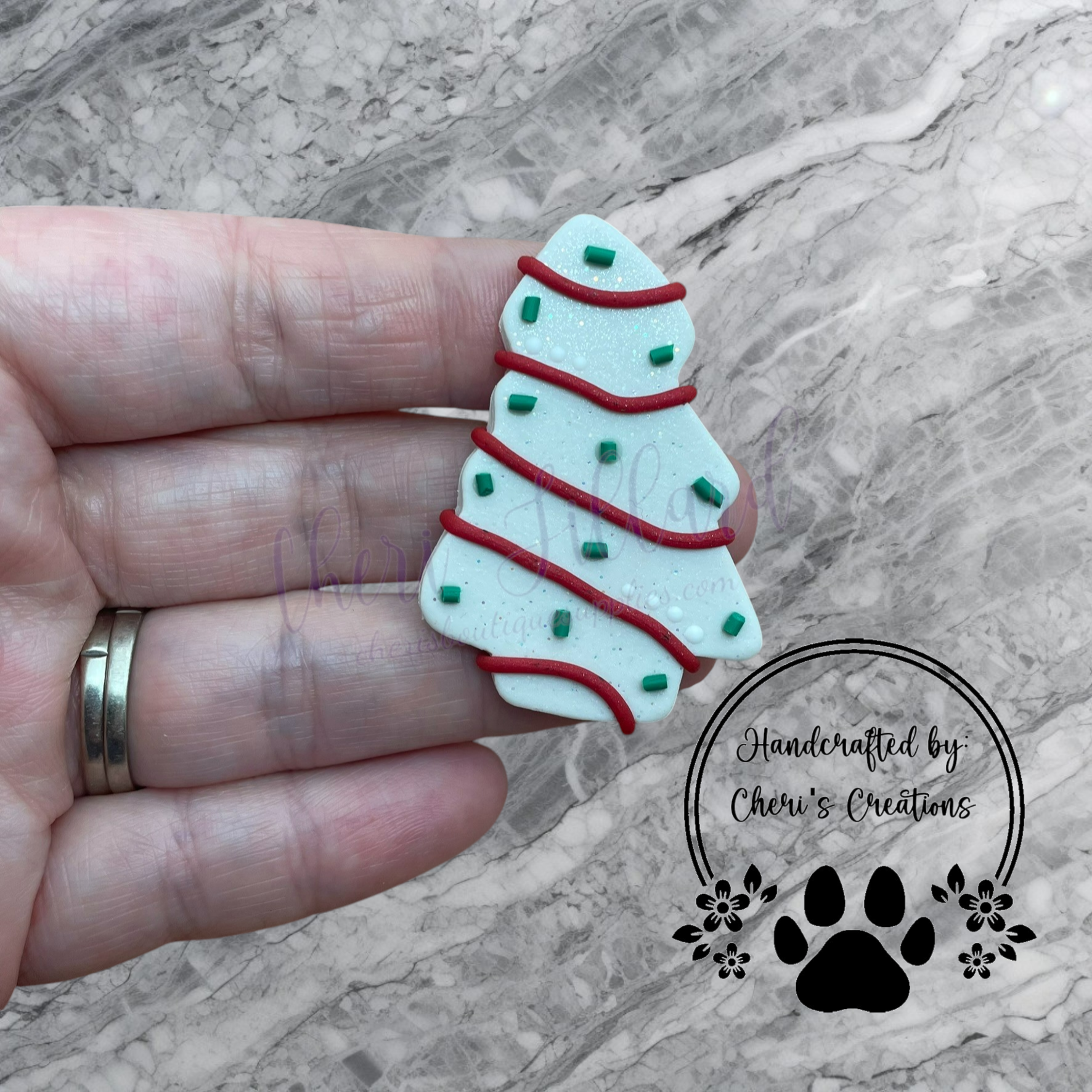 Christmas Tree Cake Bow Center – Handmade Polymer Clay Embellishment
