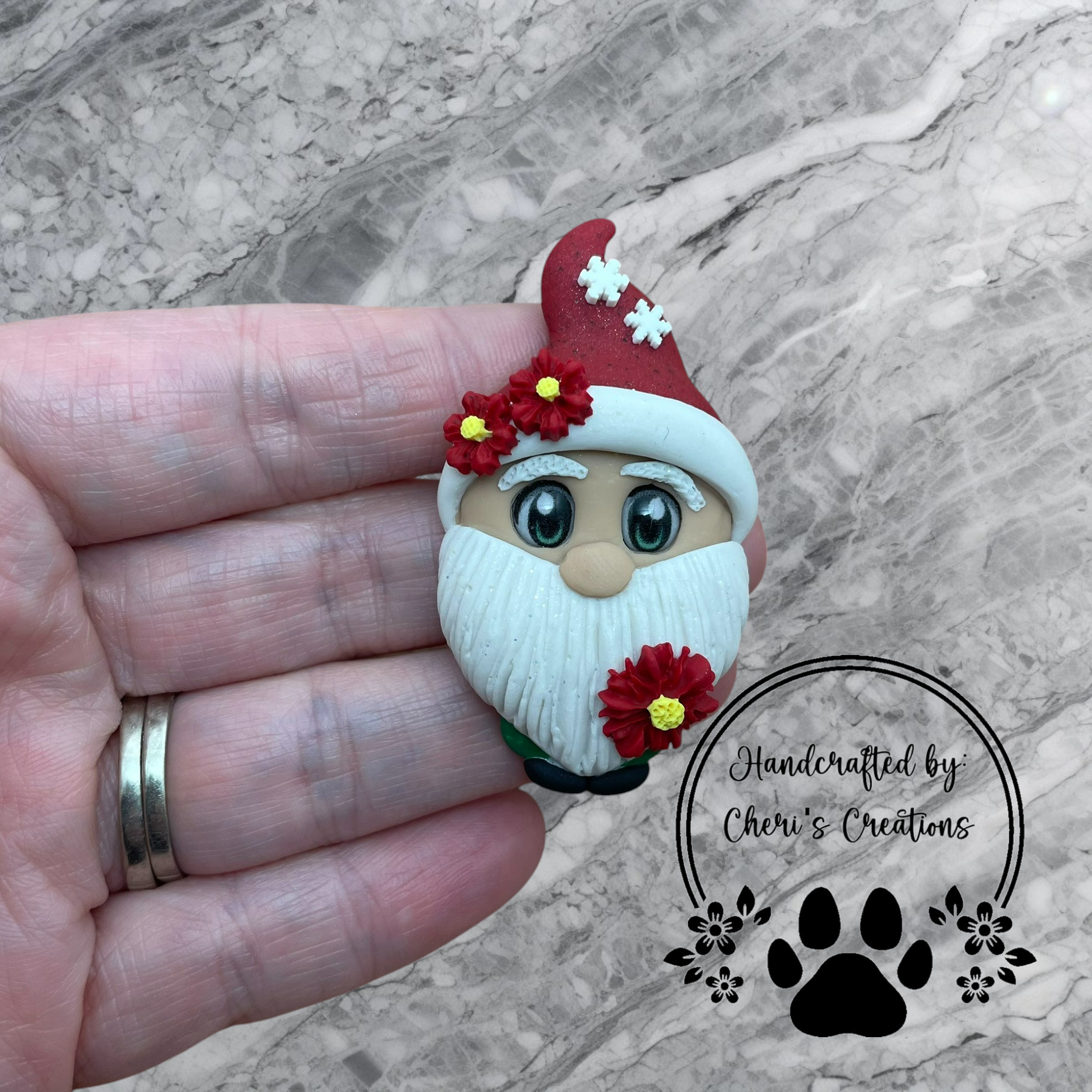 Festive Poinsettia Gnome Polymer Clay Embellishment