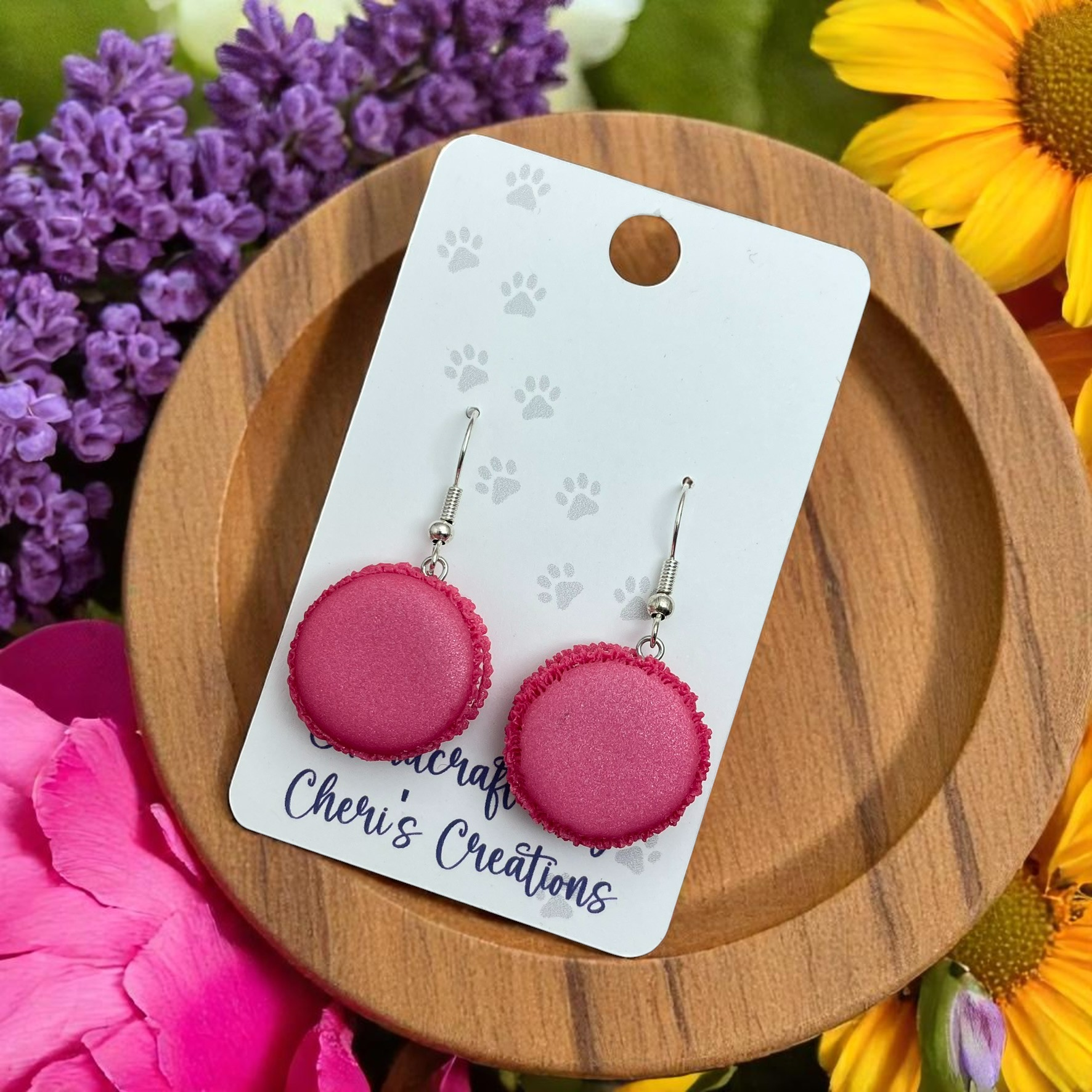 Handmade Pink Macaron Dangle Earrings | Polymer Clay Earrings | Cute Food Jewelry | Kawaii Accessories