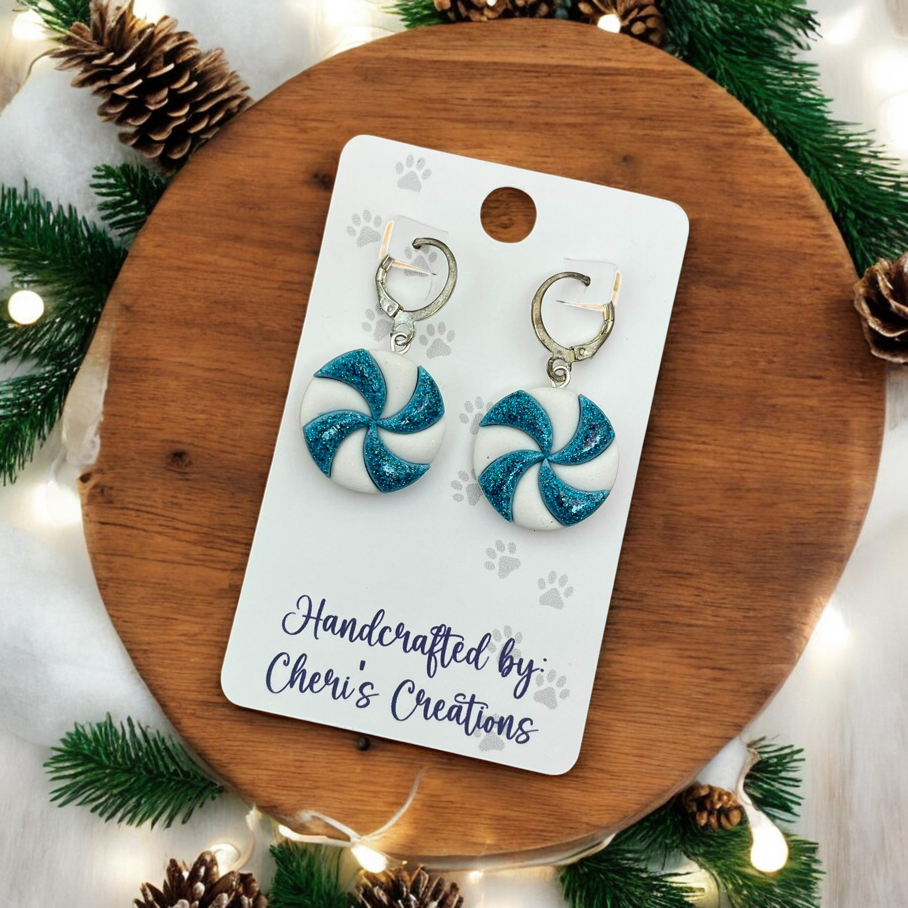 Peppermint Candies in Blue Polymer Clay Dangle Earrings