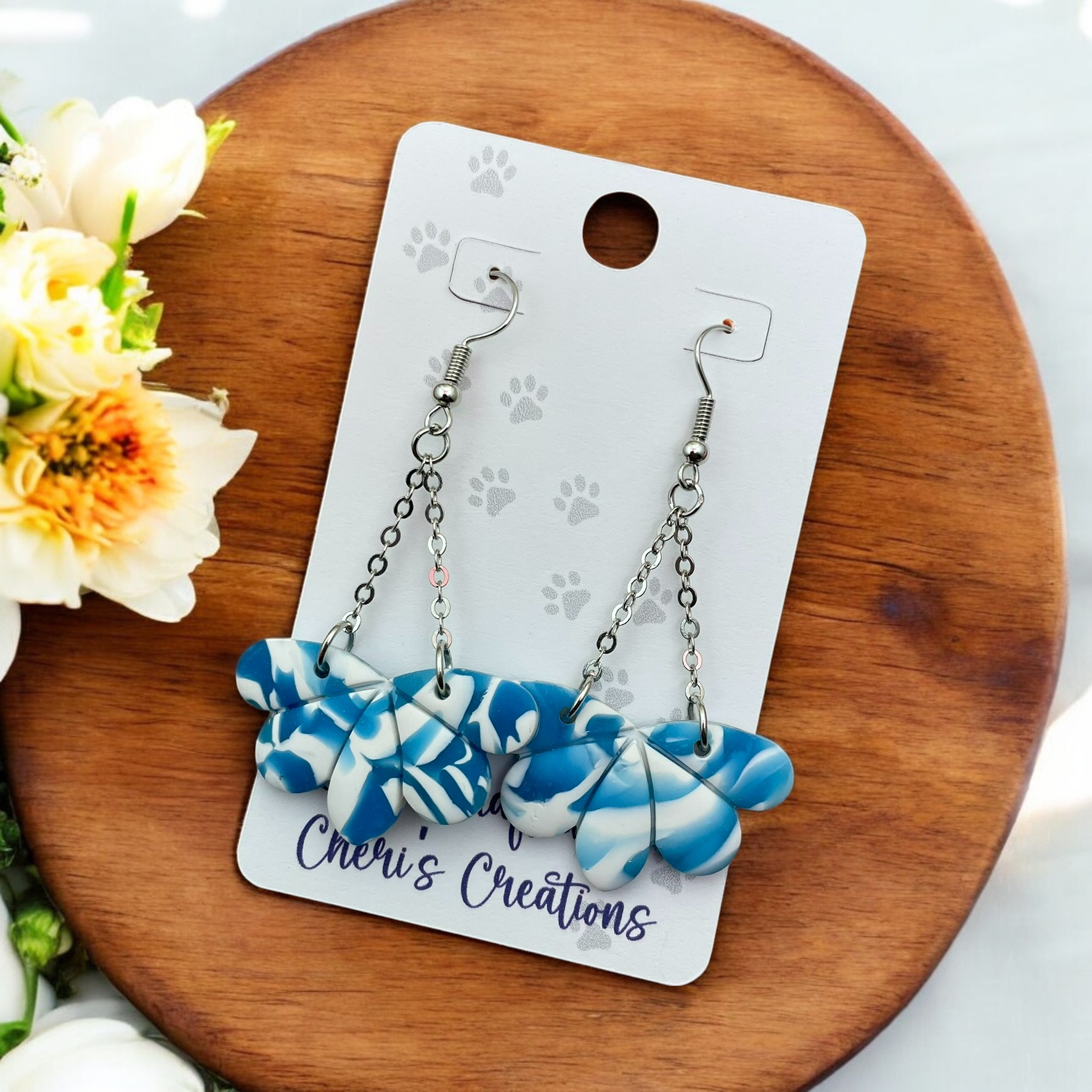 Ocean Blue Flower Petal Polymer Clay Earrings