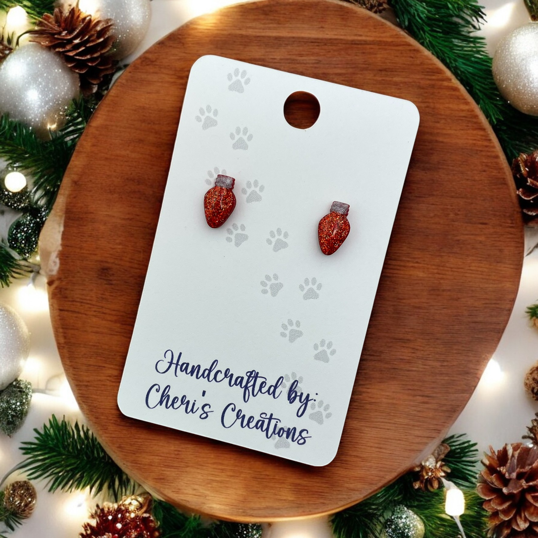 Brighten up your holiday festivities with these delightful red glitter Christmas bulb stud earrings. Crafted to resemble classic holiday ornaments, each earring is beautifully embellished with sparkling glitter that adds a festive flair. The vibrant red hue captures the essence of the season, making them the perfect accessory for holiday parties, family gatherings, or cozy get-togethers. Lightweight and comfortable, these earrings effortlessly elevate any outfit, adding a cheerful touch of whimsy. Whether you’re treating yourself or searching for the ideal gift, these charming bulb studs are sure to spread holiday cheer wherever you go!