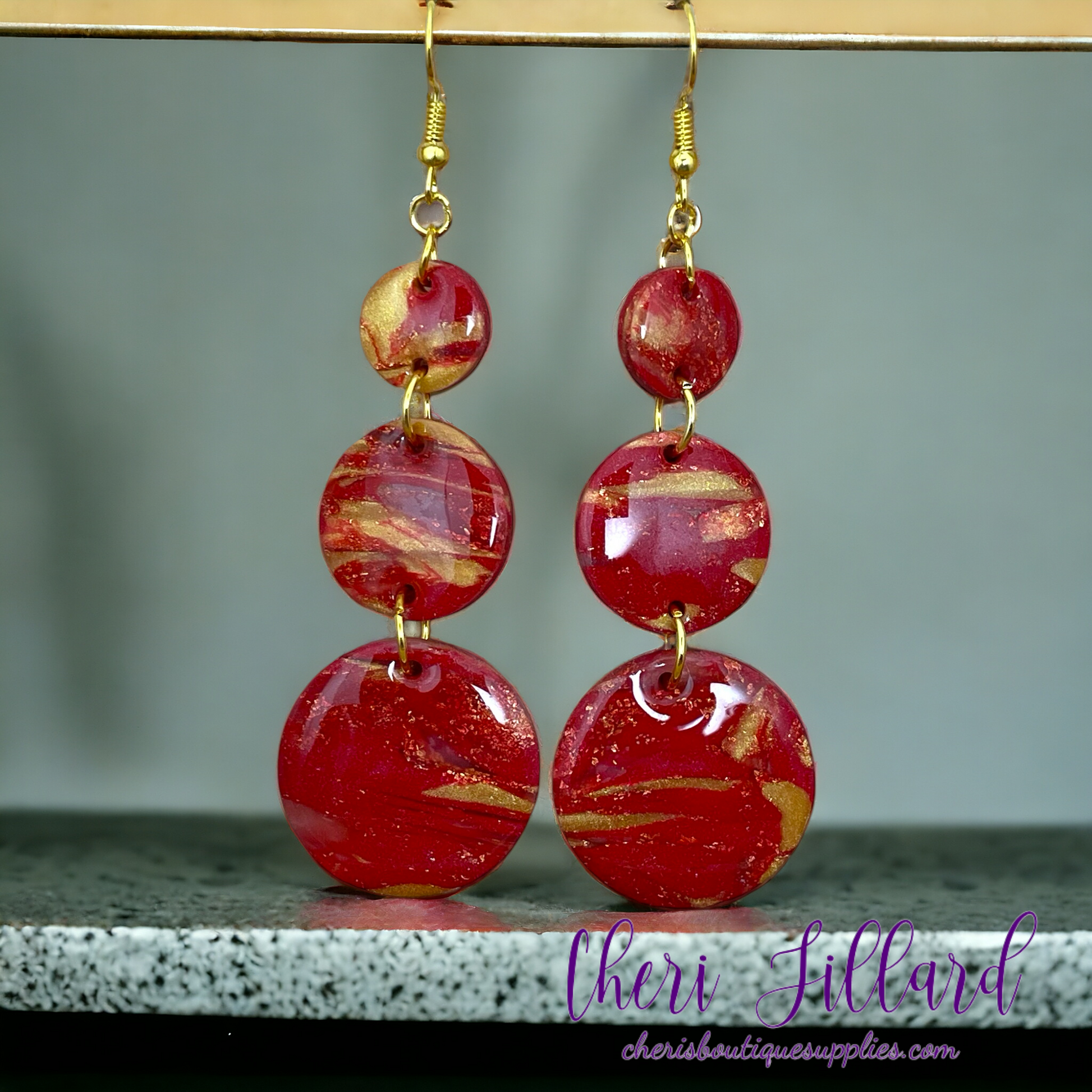 Red & Gold Geometric Circles Polymer Clay Earrings
