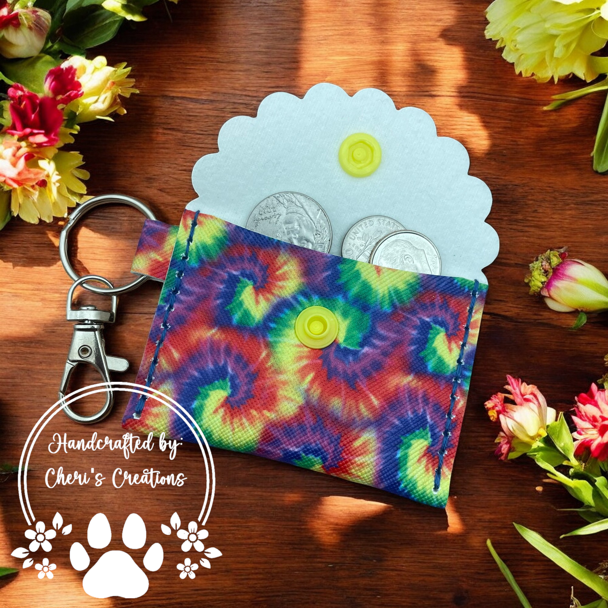 Bring a pop of color to your essentials with our Tie Dye Faux Leather Mini Wallet! Featuring a vibrant, swirling tie-dye pattern, this wallet adds a groovy touch to your everyday style. Made from high-quality faux leather, it’s designed to securely hold cash, change, or other small items, keeping them safe with a sturdy snap closure. The attached keychain makes it easy to clip onto bags, keys, or belt loops for quick access wherever you go. Fun, functional, and full of personality, this mini wallet is the perfect accessory for those who love a colorful, retro vibe!