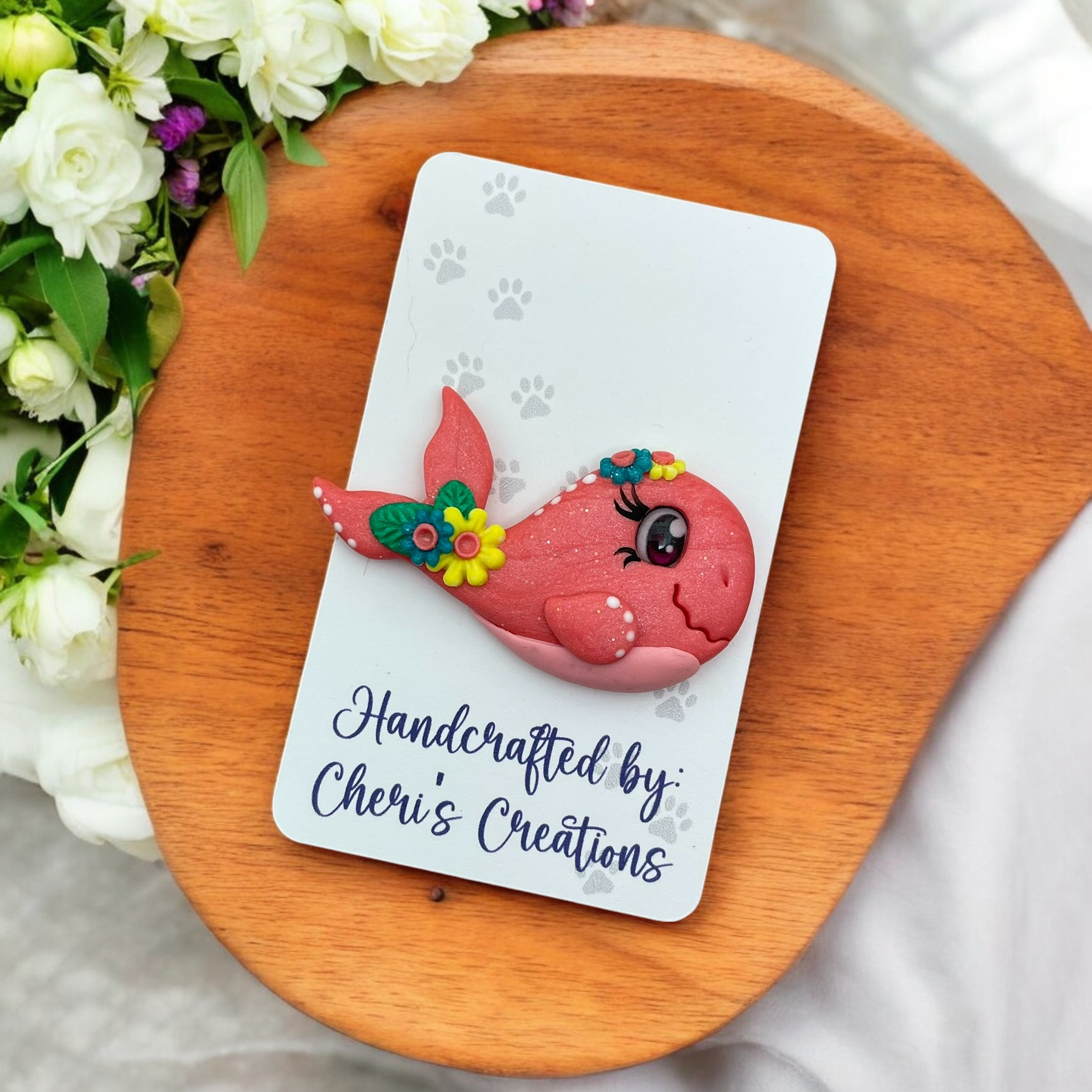 Spring Coral Whale Polymer Clay Embellishment