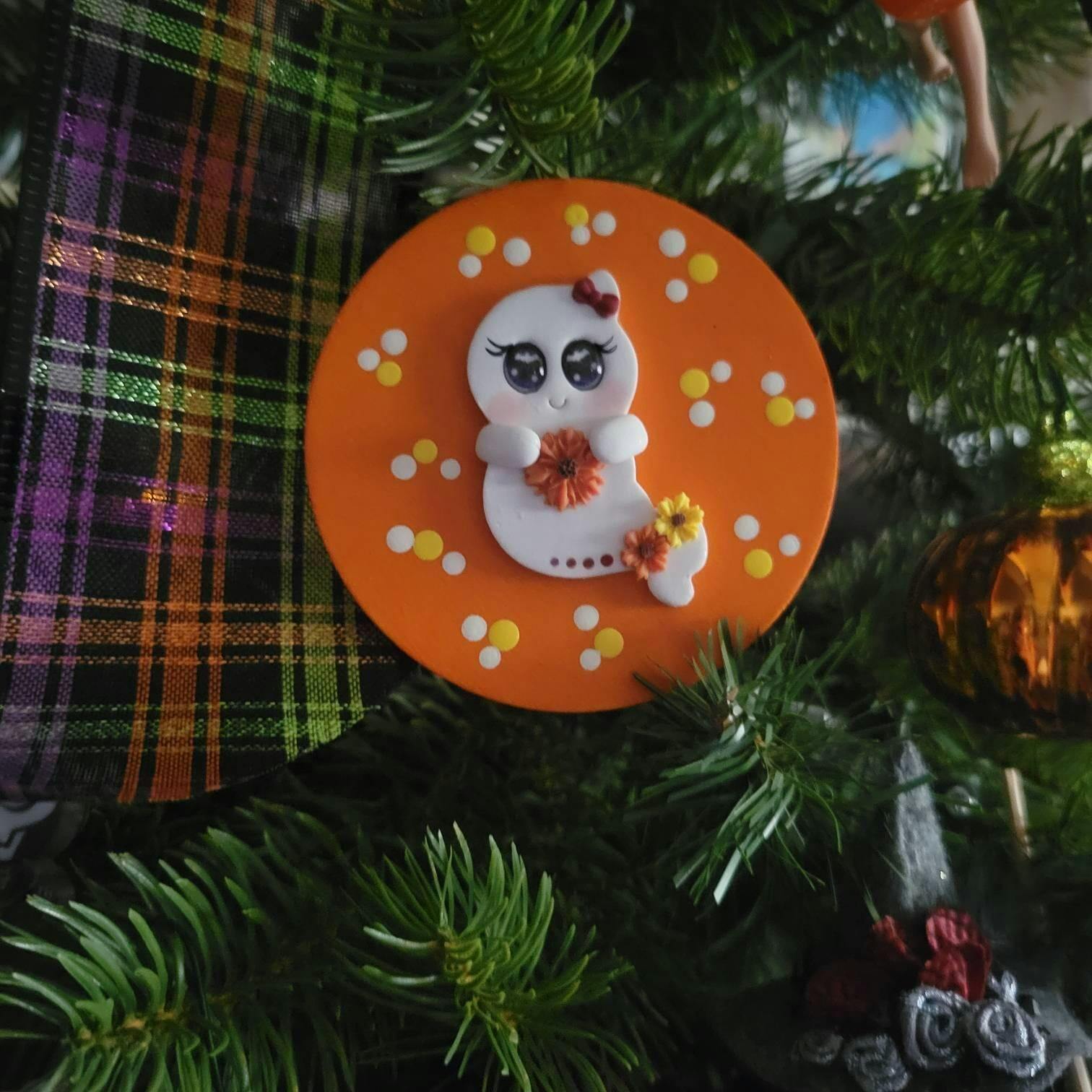 Sunflower Ghost Bow Center – Handmade Polymer Clay Embellishment