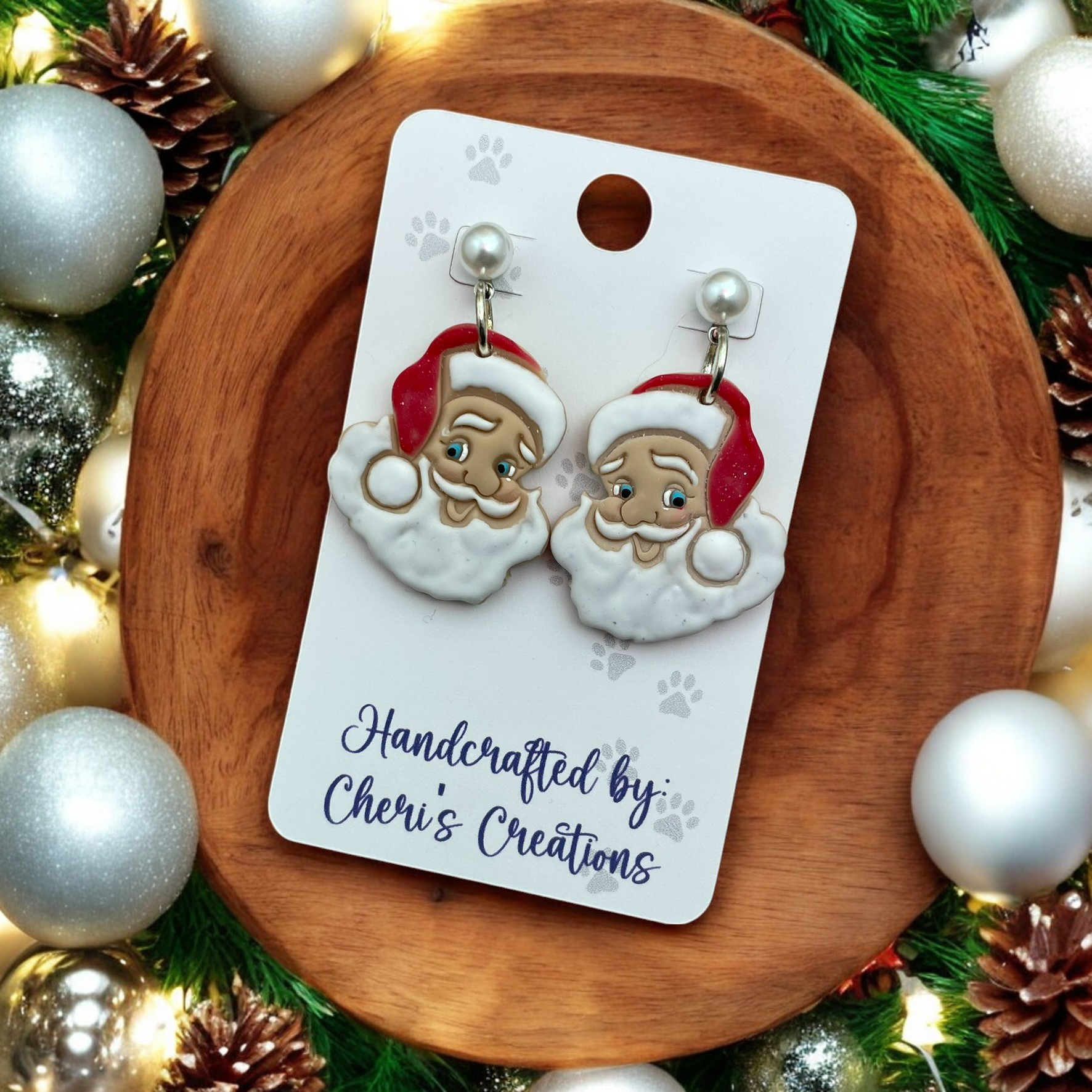 Classic Holiday Santa Polymer Clay Dangle Earrings