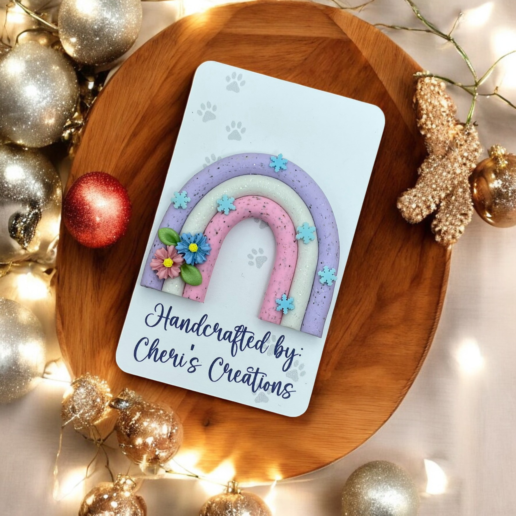 Whimsical Winter Floral Rainbow Polymer Clay Embellishment