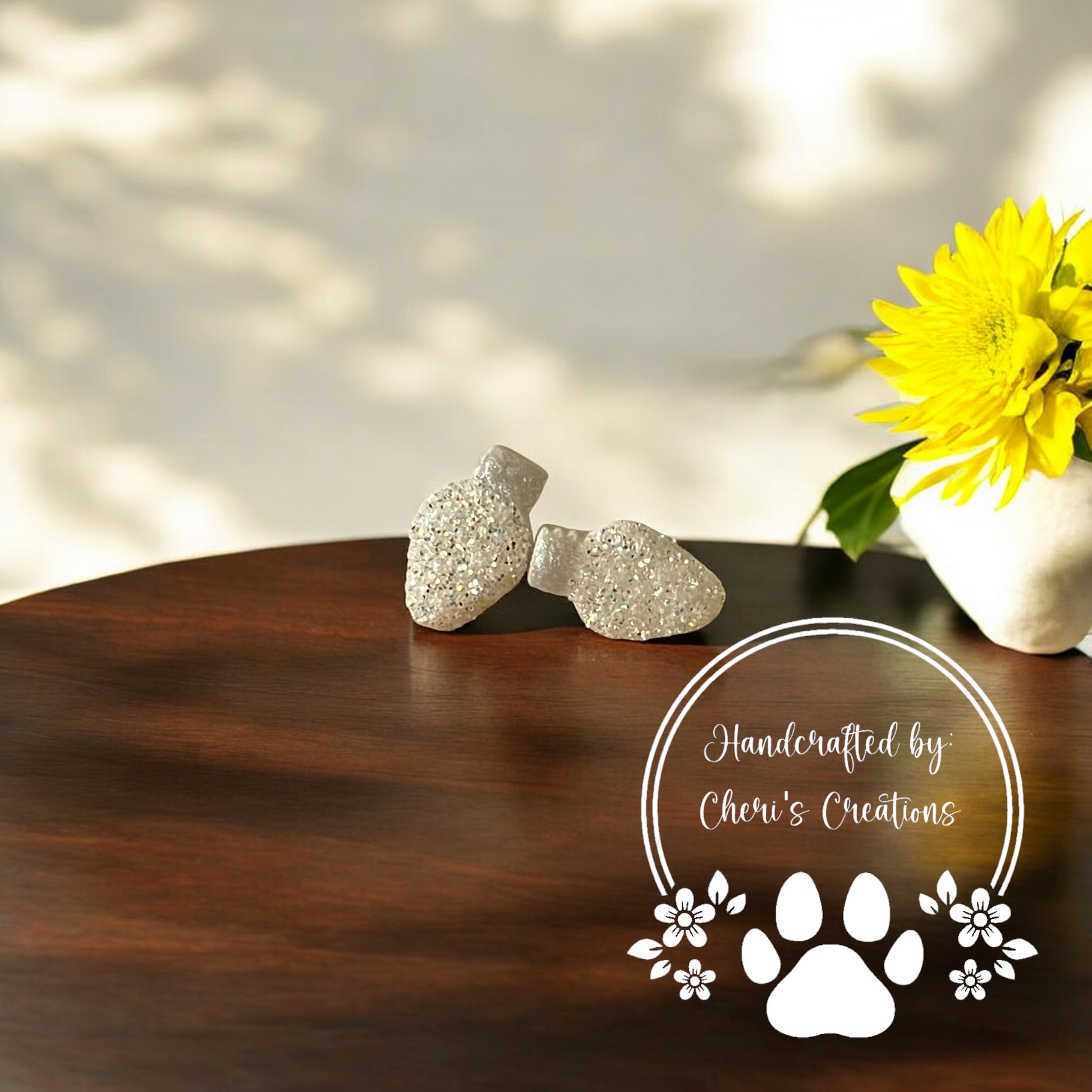 Add a touch of sparkle to your holiday season with these enchanting white glitter Christmas bulb stud earrings. Designed to resemble classic holiday ornaments, each earring is adorned with shimmering glitter that catches the light beautifully, creating a festive and playful vibe. The pristine white hue offers a modern twist on traditional Christmas colors, making them perfect for any festive occasion. Lightweight and comfortable, these earrings are ideal for holiday parties, family gatherings, or simply adding a bit of cheer to your everyday look. Whether as a gift for someone special or a delightful treat for yourself, these charming bulb studs are sure to bring joy to your celebrations!