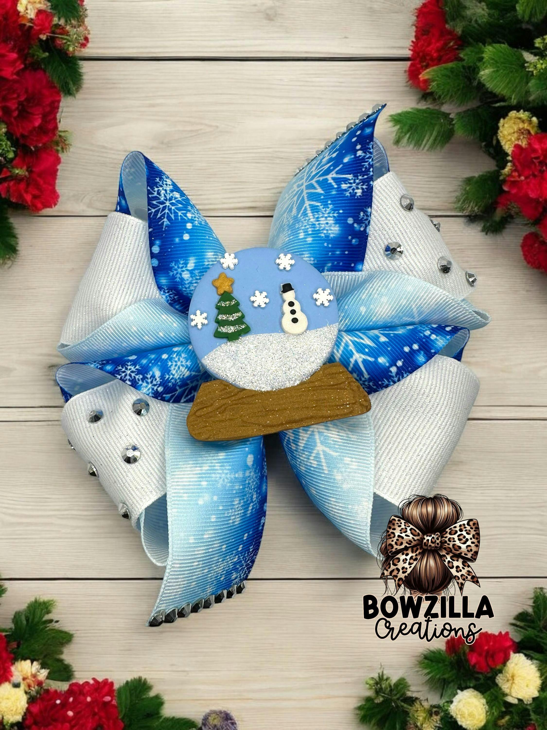 Winter Snow Globe Bow Center – Handmade Polymer Clay Embellishment