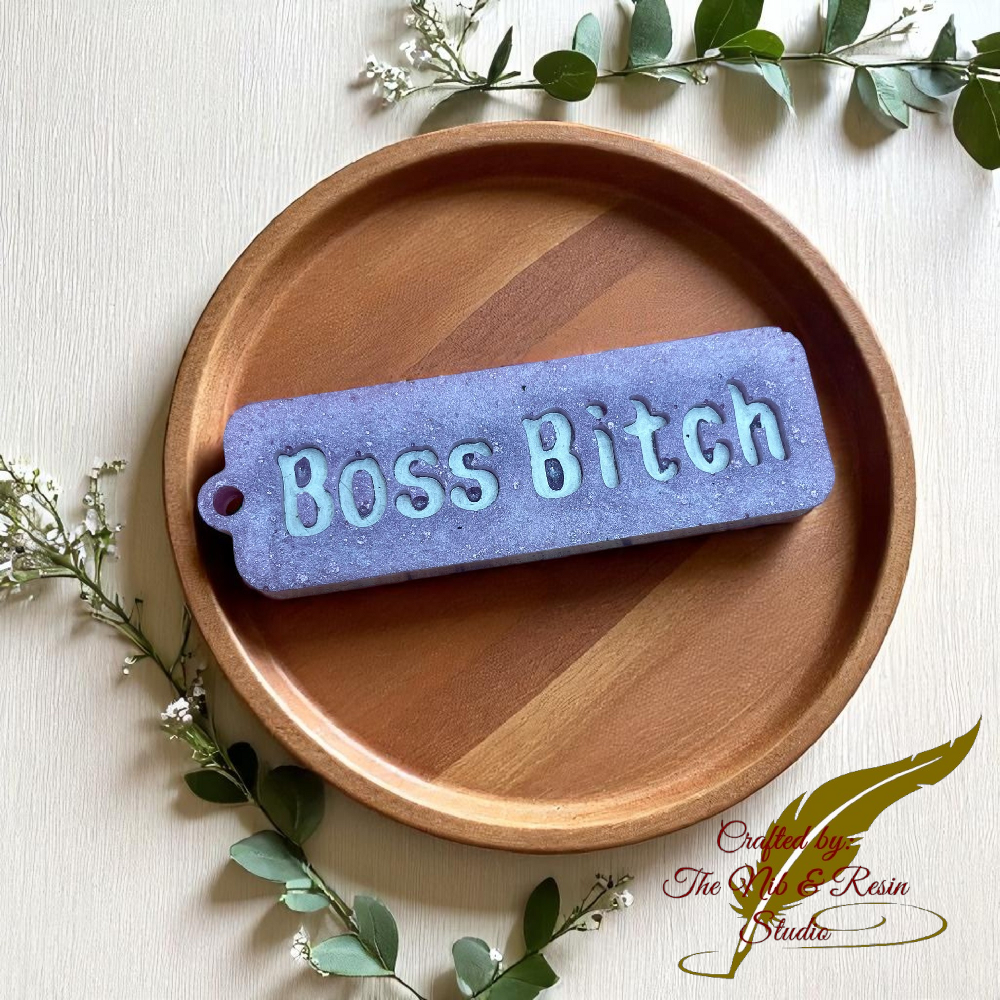 Adult Language Keychain #2 (NSFC): "Boss B**tch" - Purple/Silver