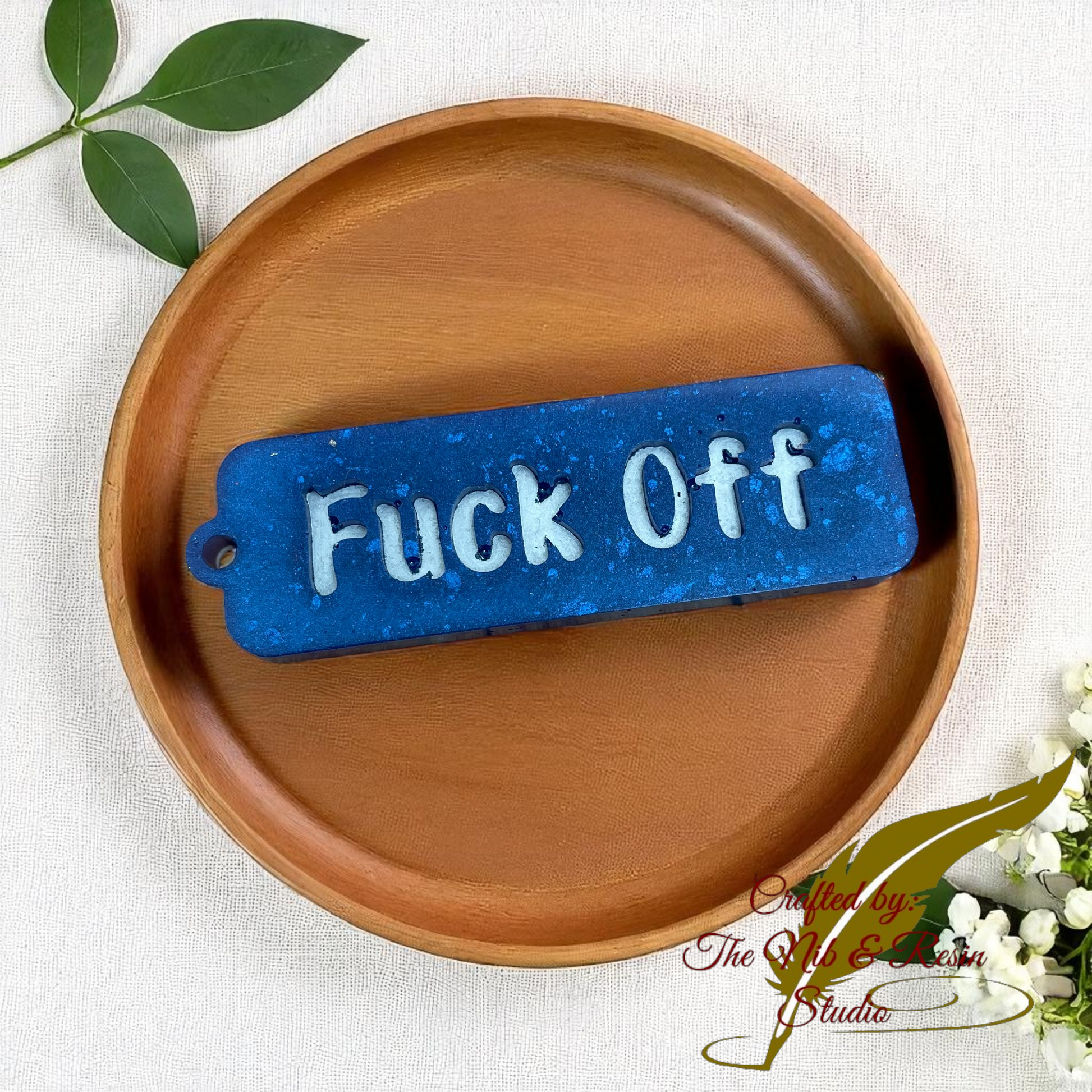 Adult Language Keychain #5 (NSFC): "F**k Off" - Blue/Silver