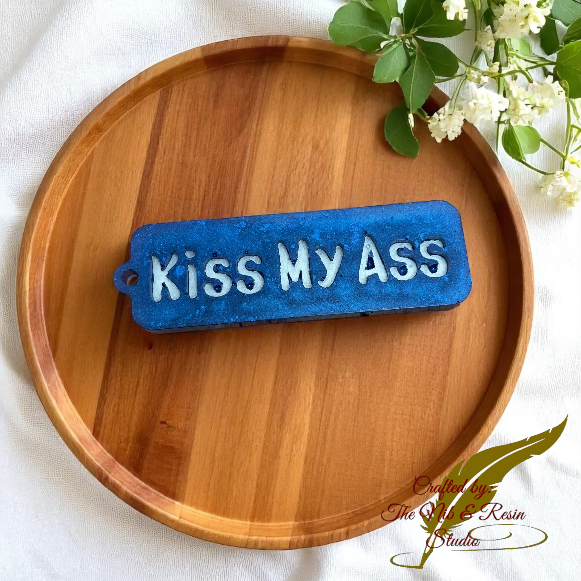 Adult Language Keychain #6 (NSFC): "Kiss My A**" - Blue/Silver