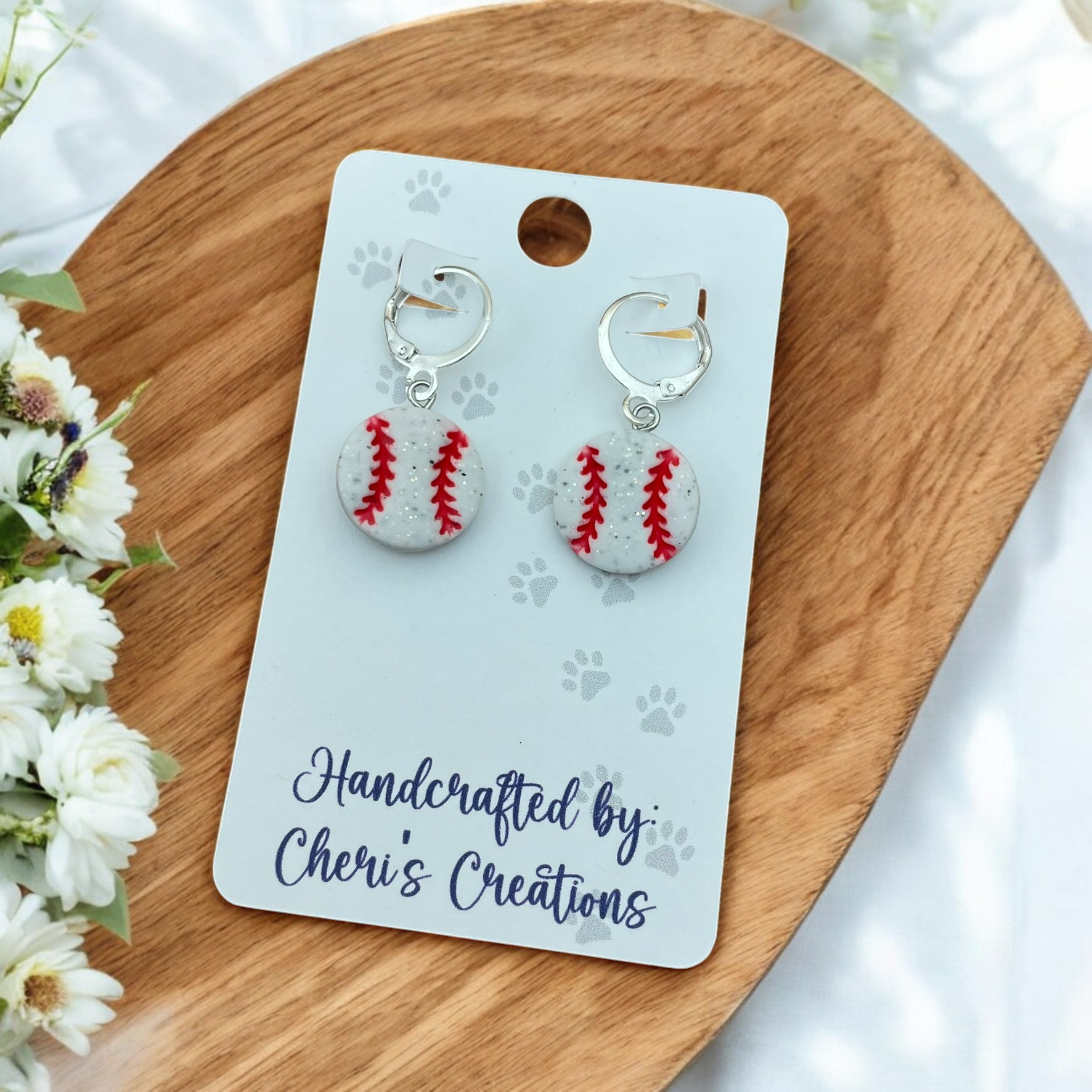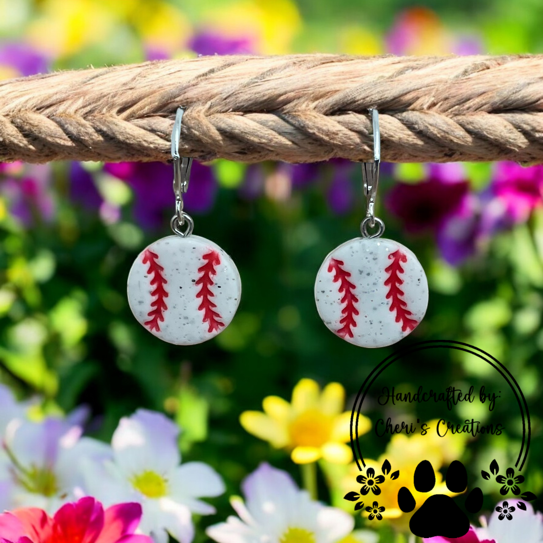 Show off your love for the game with these handmade baseball dangle earrings! Crafted from polymer clay, each earring features a detailed, miniature baseball design that captures the essence of America's pastime. The earrings dangle from secure stainless steel lever back hoops, offering both style and comfort for all-day wear.