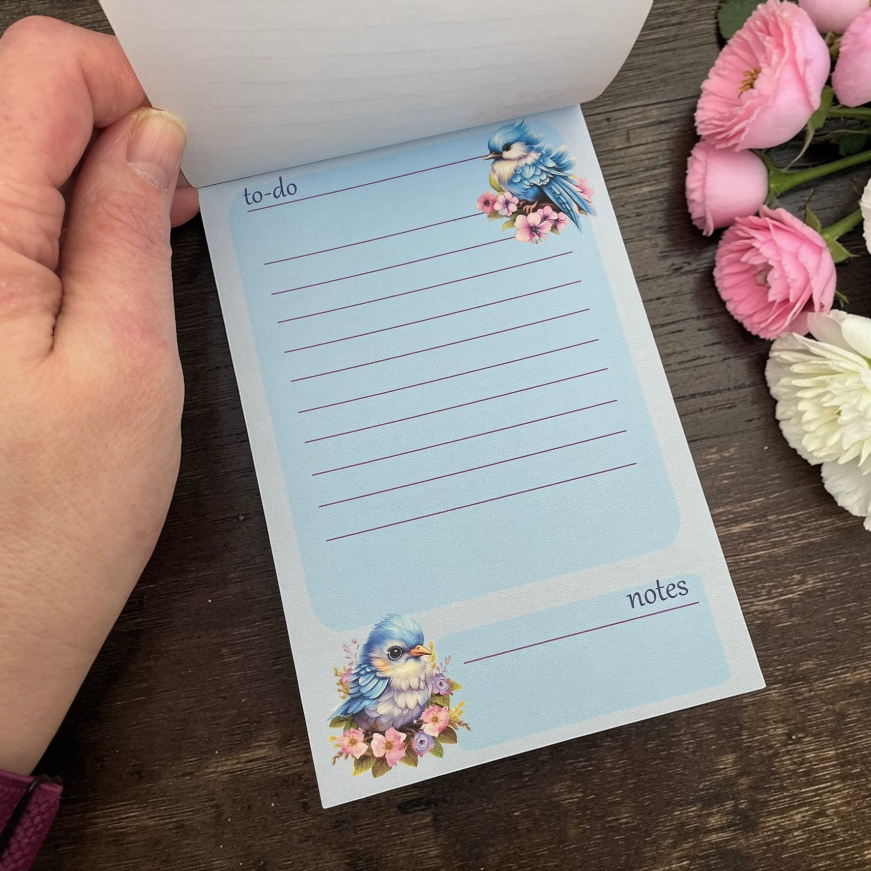 This bluebird notepad is perfect for grocery lists, daily to-do lists, reminders, or jotting down ideas throughout the day. Keep it on your desk, kitchen counter, or workspace so you always have a convenient place to write things down.
