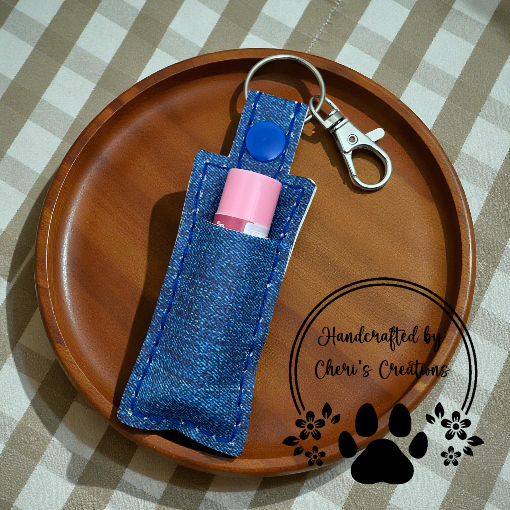 This chapstick keychain provides a practical way to carry your lip balm. Its compact shape makes it ideal for keys or small bags.