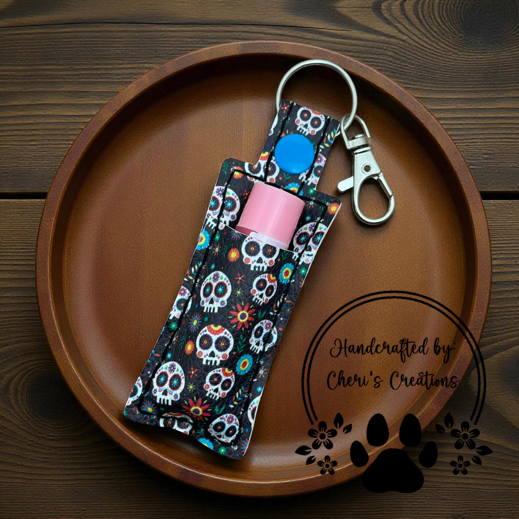 Chapstick Keychain - Sugar Skulls Lip Balm Holder
