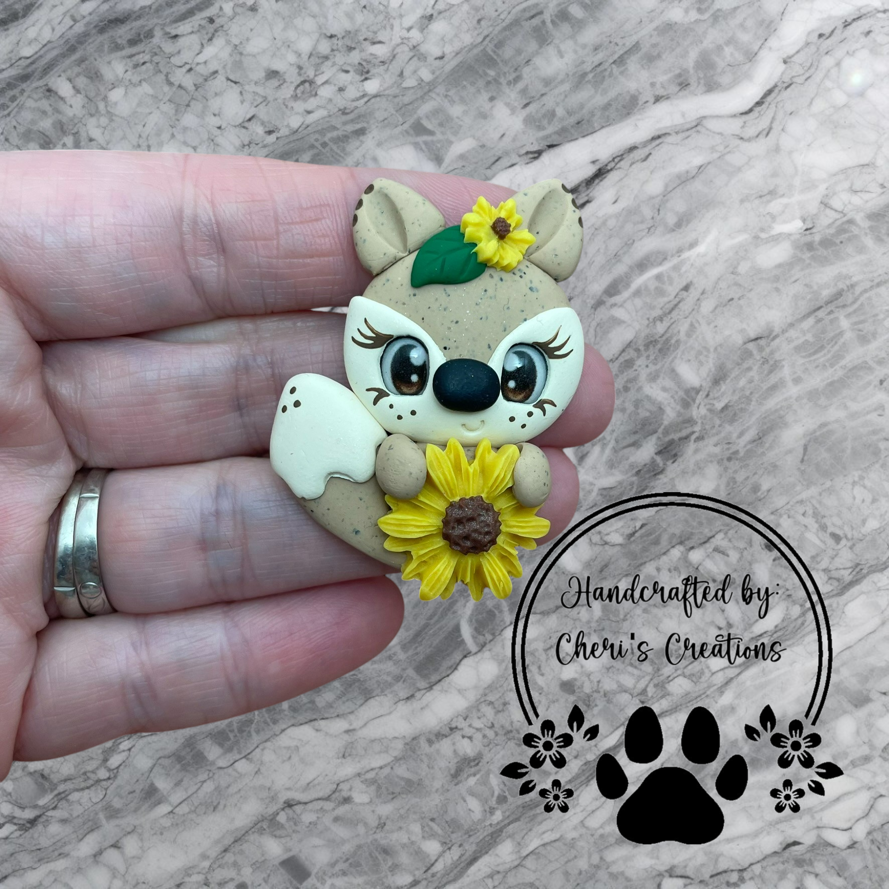 This charming little fox is the perfect companion for your craft projects! With its adorable sunflower in tow, this embellishment is a cheerful way to add a pop of nature to your creations. Whether it's for bow centers, keychains, magnets, scrapbooking, or any other craft, this sweet fox brings a touch of whimsy and warmth to any design.