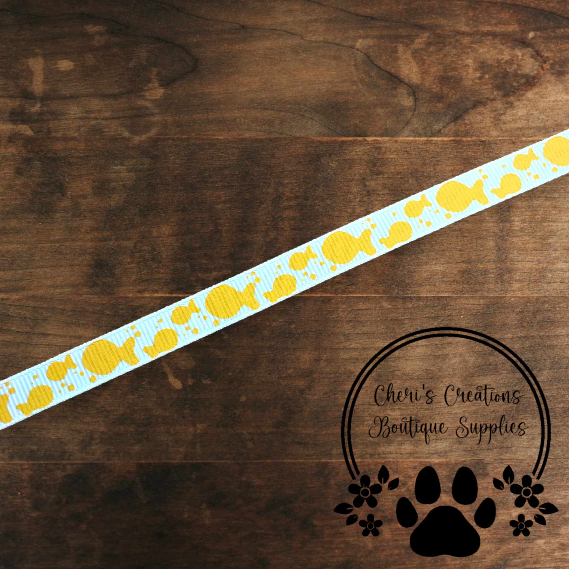Cheesy Fish Snack Grosgrain Ribbon – 3/8", 5/8", 7/8" | Cute Snack-Themed Ribbon for Hair Bows & Crafts