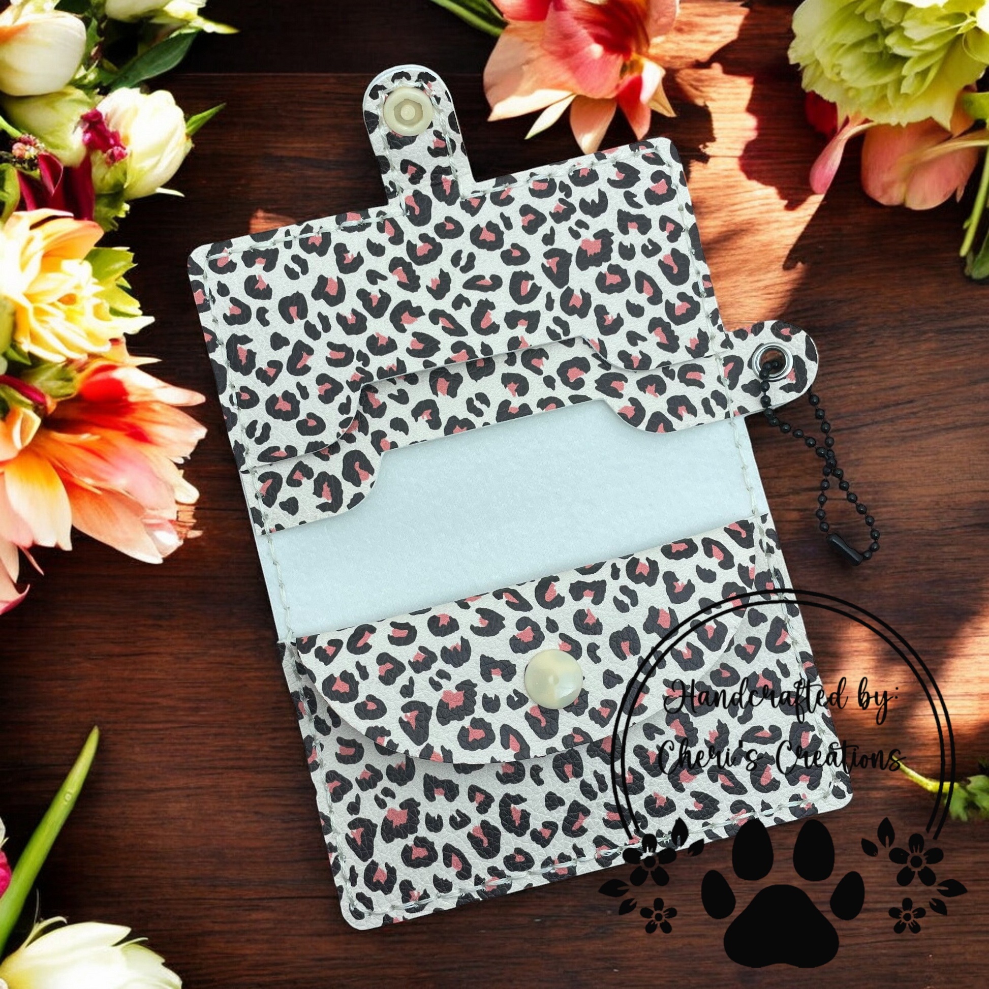 This handmade faux leather coin and card wallet features a bold cheetah print design, perfect for those who love a fierce and stylish touch to their accessories. The eye-catching pattern adds a trendy flair, making it a statement piece while staying functional for everyday use.