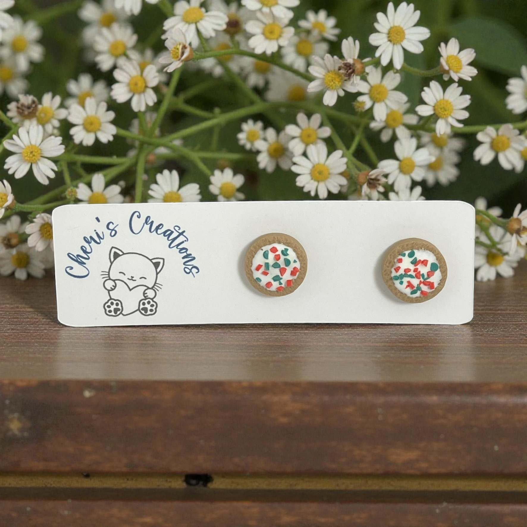 Christmas Sugar Cookie Studs – Handmade Polymer Clay Earrings