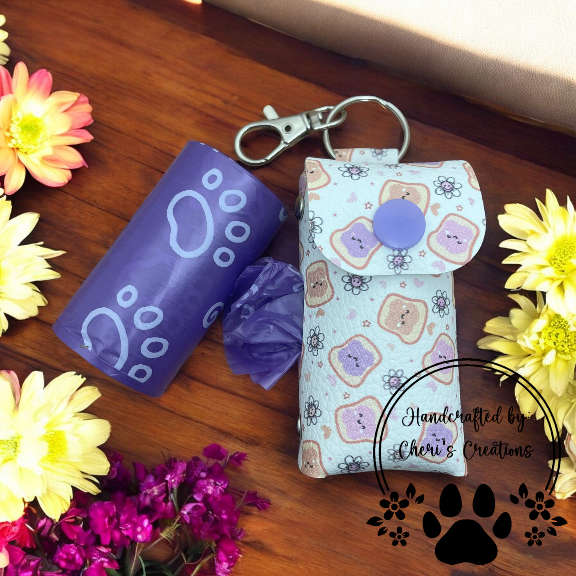 Spread a little fun on your walks with this quirky doggy poo pouch featuring a delightful peanut butter and jelly design! Perfect for holding waste bags in a neat and accessible way, this pouch adds a playful touch to your outings. With a secure snap closure and a convenient clip for attaching to leashes or bags, it’s the ideal accessory for pet parents who appreciate a bit of whimsy. A fun and functional must-have for PB&J fans and their furry friends!