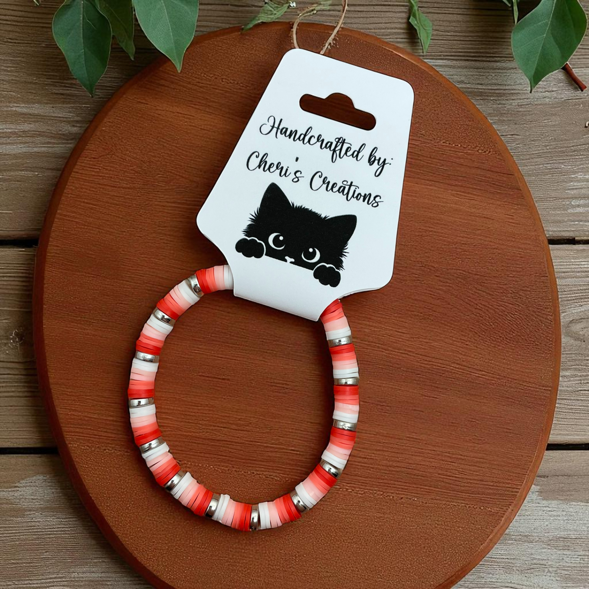 Coral Heishi Bead Bracelet – Handmade Stretch Bracelet