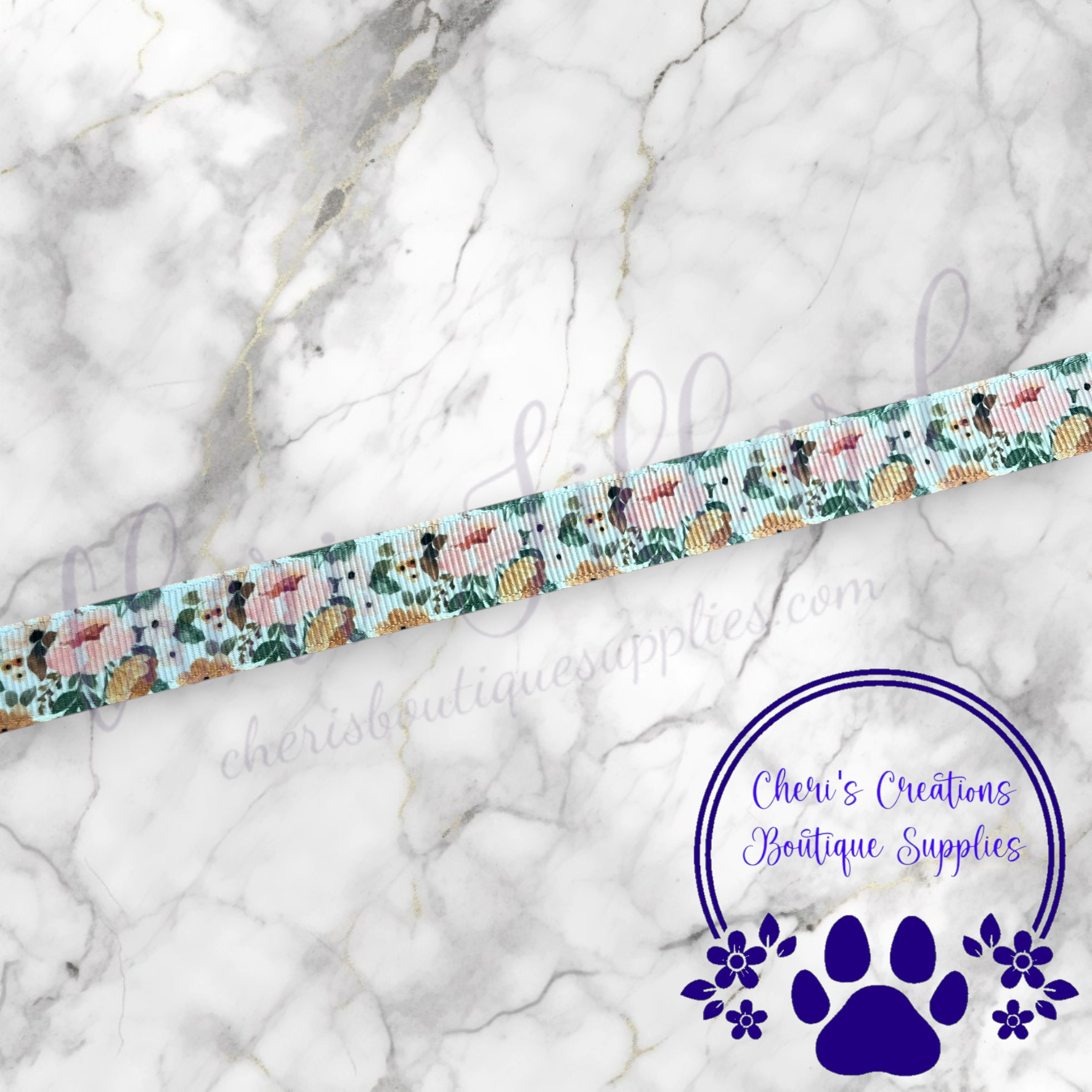 Country Floral Highland Ribbon - 5/8" 7/8" Grosgrain Ribbon by the Yard