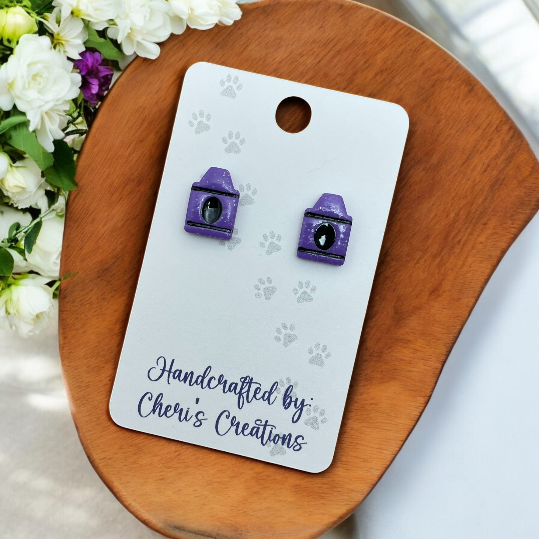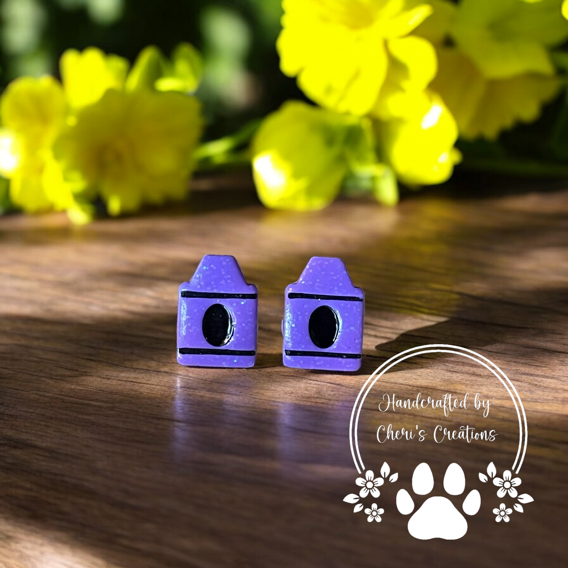Cute Purple Crayon Polymer Clay Stud Earrings