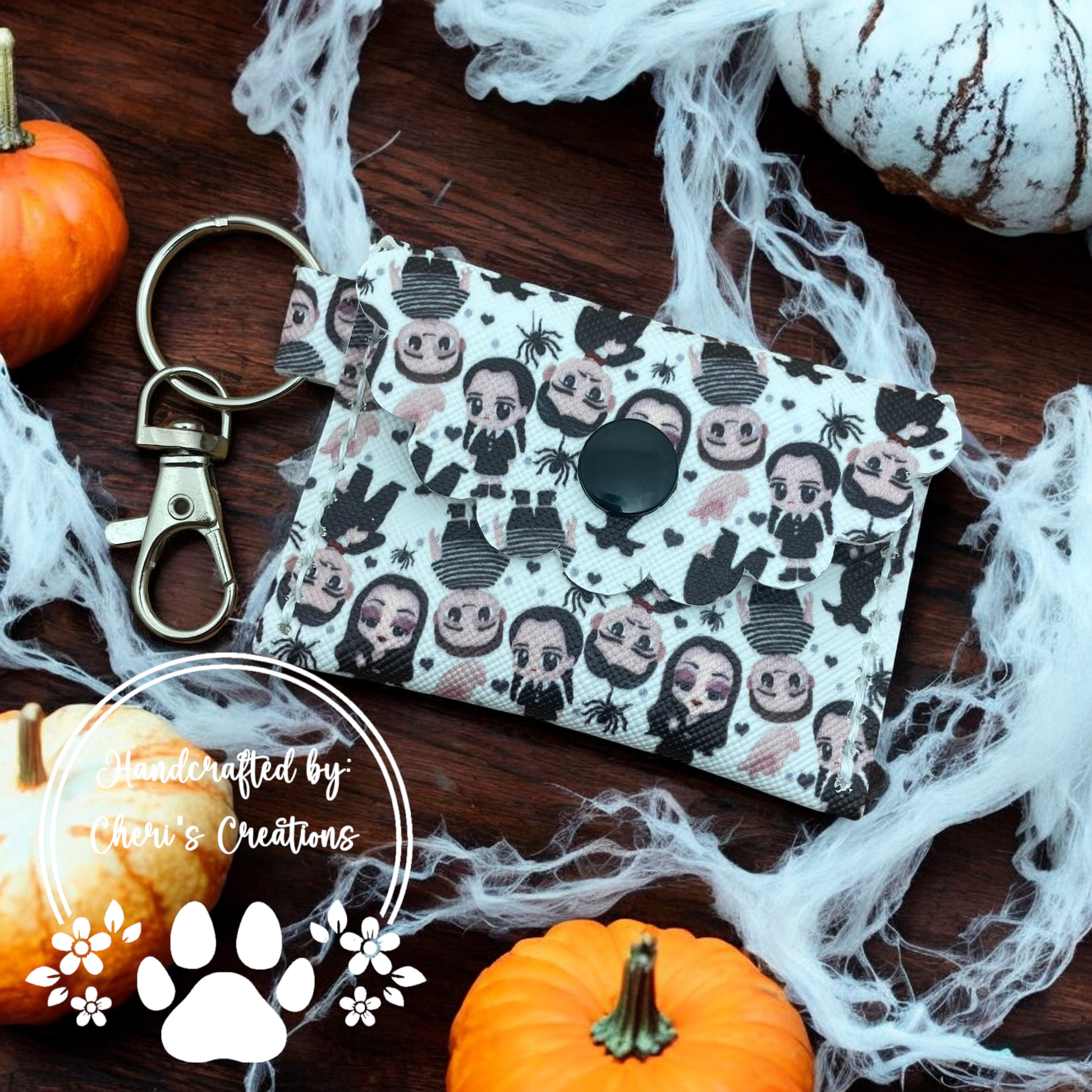 Channel a gothic-chic vibe with this Dark & Moody Faux Leather Mini Wallet! Featuring a striking design inspired by a dark and mysterious aesthetic, this wallet is perfect for those with a love for all things moody and unconventional. Crafted from high-quality faux leather, it securely holds cash, change, and small essentials, while the snap closure ensures everything stays in place. The attached keychain makes it easy to clip onto bags, keys, or belts for on-the-go access. Embrace your inner rebel with this unique, stylish accessory that adds a hint of dark charm to your everyday carry.