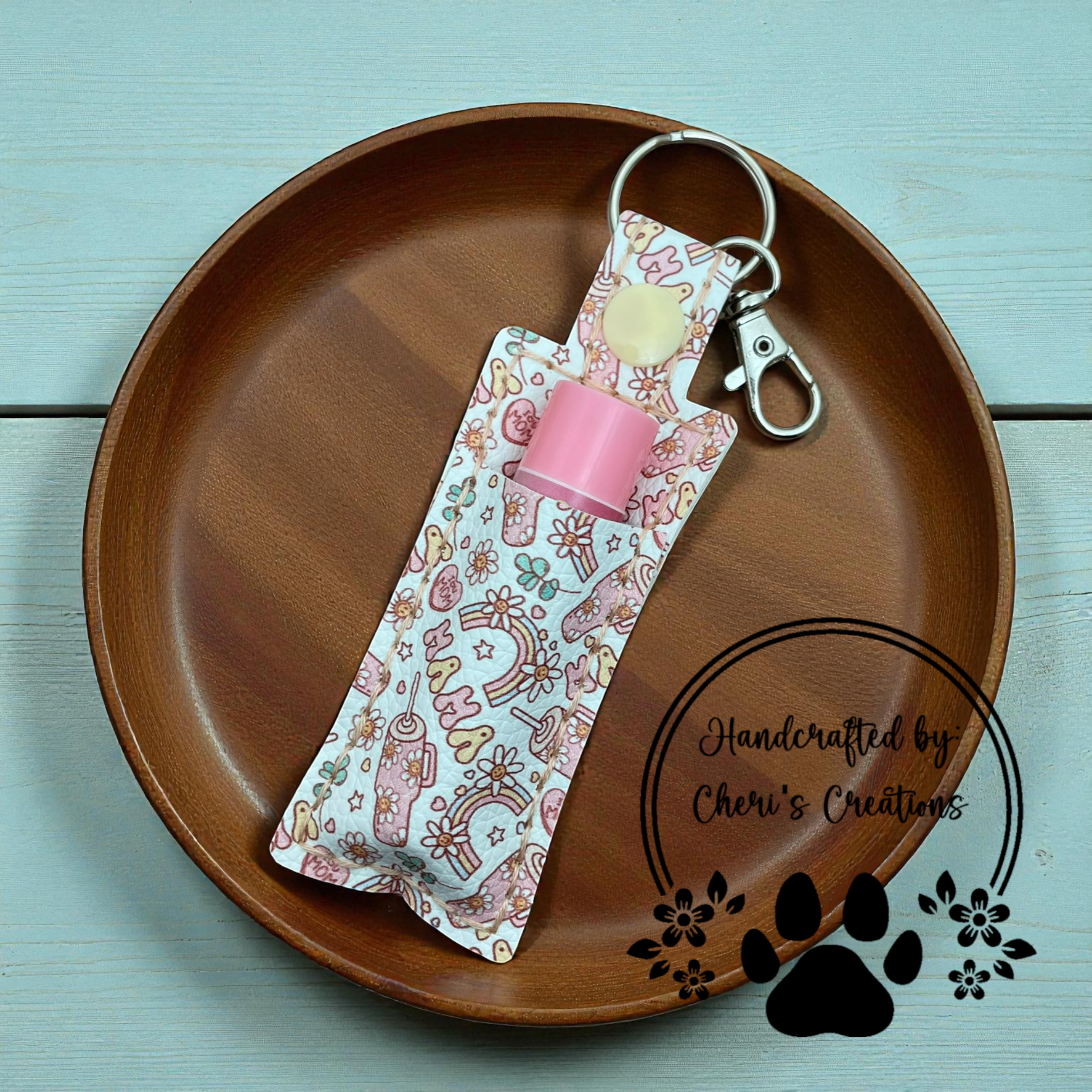 This handmade chapstick keychain keeps your lip balm easy to access and simple to carry. Clip it to your keys, bag, or lanyard for effortless everyday use.