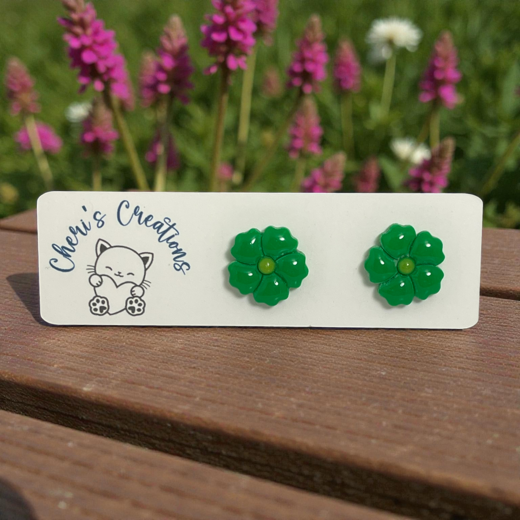 Green Flower Studs – Handmade Polymer Clay Earrings