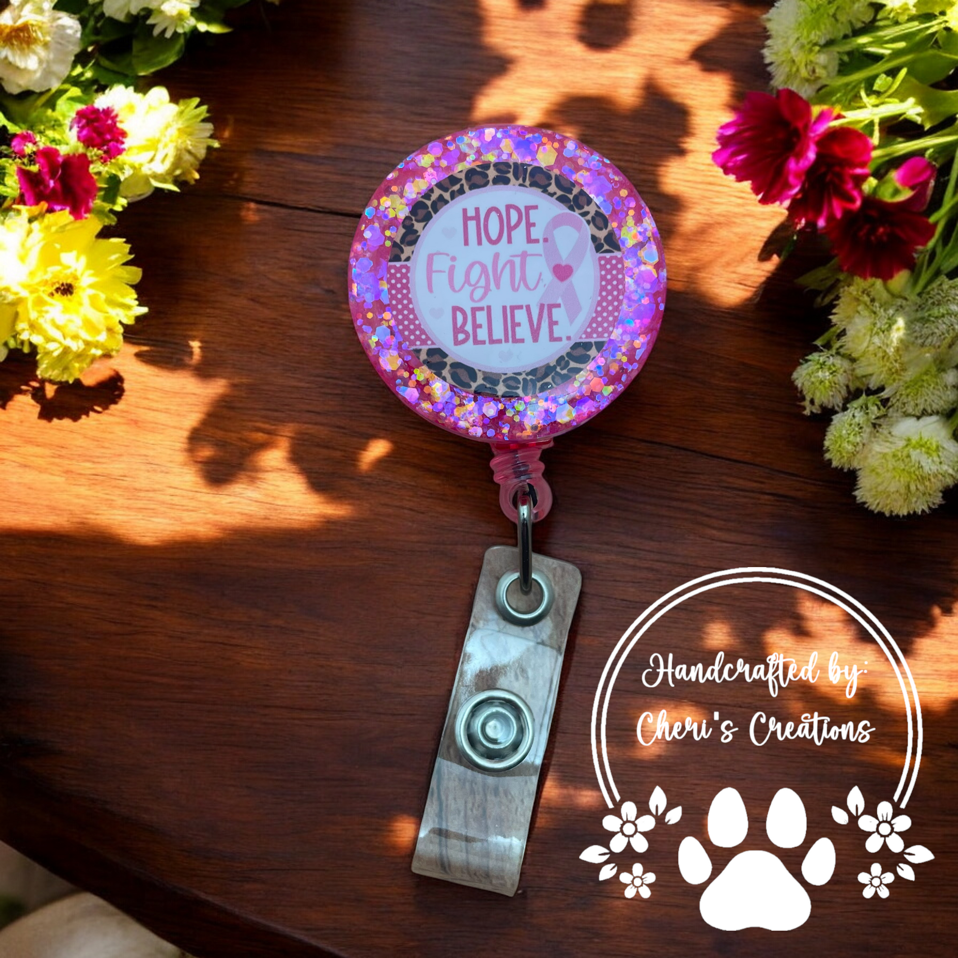 Show your strength and support with this inspiring badge reel dedicated to breast cancer awareness. Featuring a beautifully crafted resin center with the powerful words 'Hope, Fight, Believe,' this badge reel serves as a reminder of resilience and unity in the fight against breast cancer. The elegant design is both stylish and meaningful, making it a perfect accessory for healthcare workers, supporters, and survivors alike. Durable and easy to use, this badge reel is a daily symbol of hope and encouragement wherever you go.