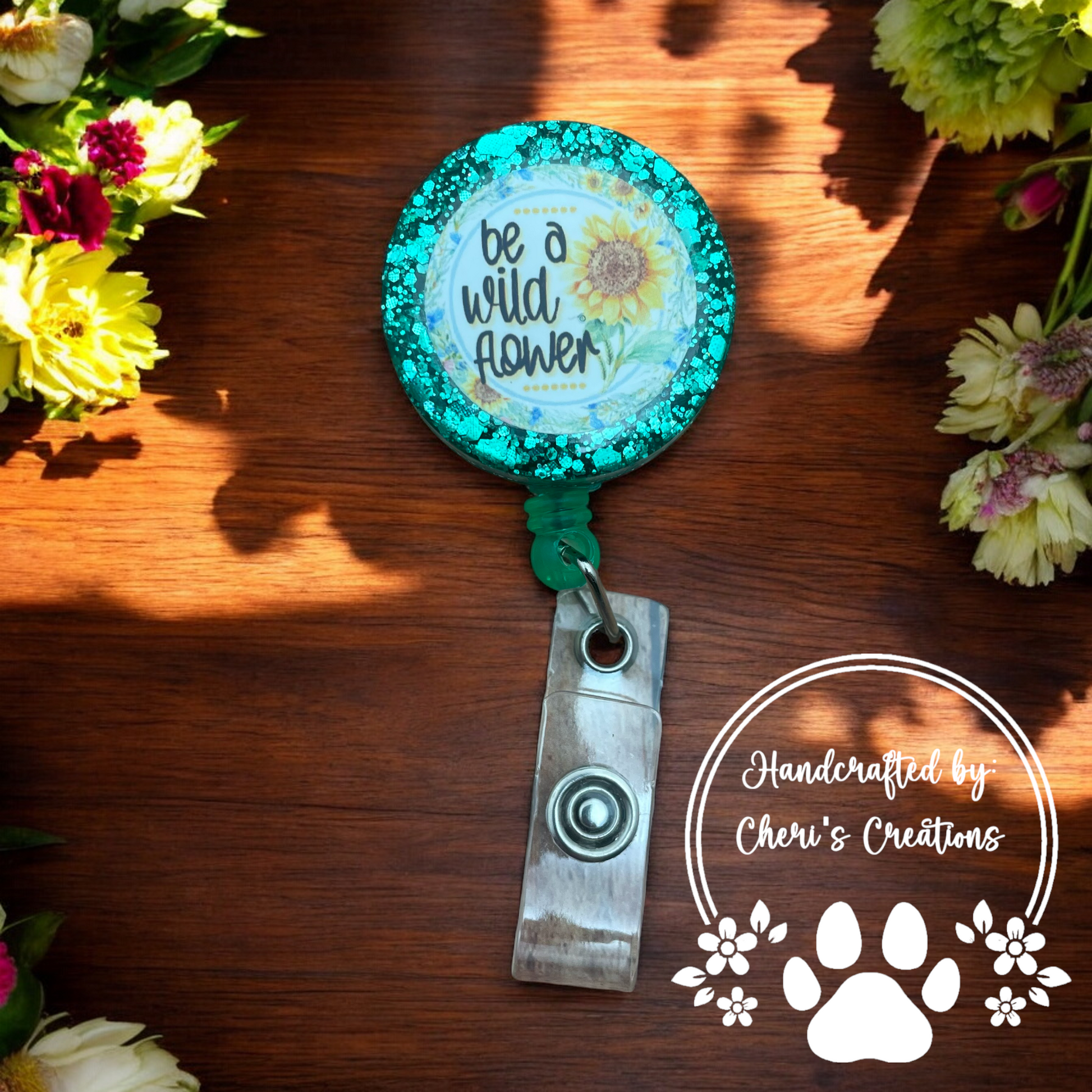 Celebrate your individuality with our enchanting badge reel featuring a resin centerpiece that beautifully displays the words "Be a Wildflower," surrounded by cheerful sunflowers. This delightful design combines functionality with a whimsical message, making it a perfect accessory for those who embrace their unique spirit and love for nature. The high-quality retractable reel ensures that your ID or keys are always within reach while adding a touch of inspiration to your outfit. With its vibrant design and reliable mechanism, this badge reel is a wonderful way to express your personality and keep organized!