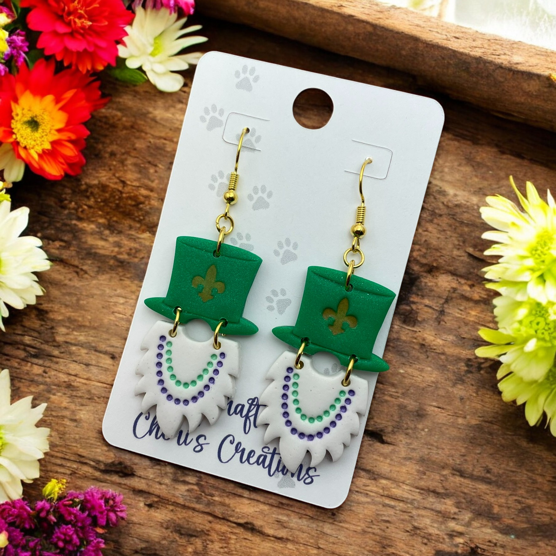 Mardi Gras Party Gnome Polymer Clay Dangle Earrings