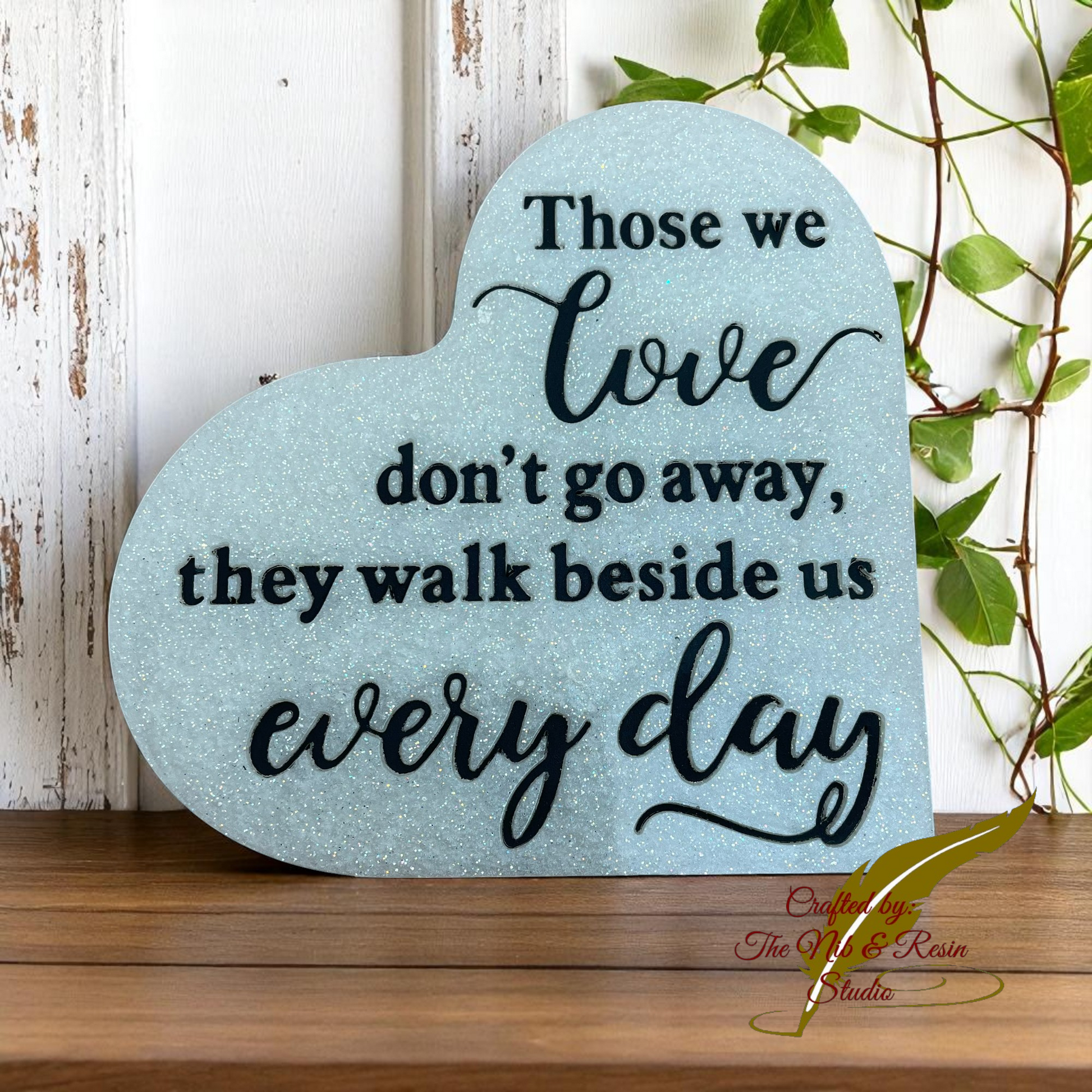 Honor the memory of a loved one with this handmade resin memorial heart, a heartfelt keepsake crafted with care and meaning. This beautiful piece features a rich pearl white background that sparkles warmly in the light, paired with black lettering that reads:
