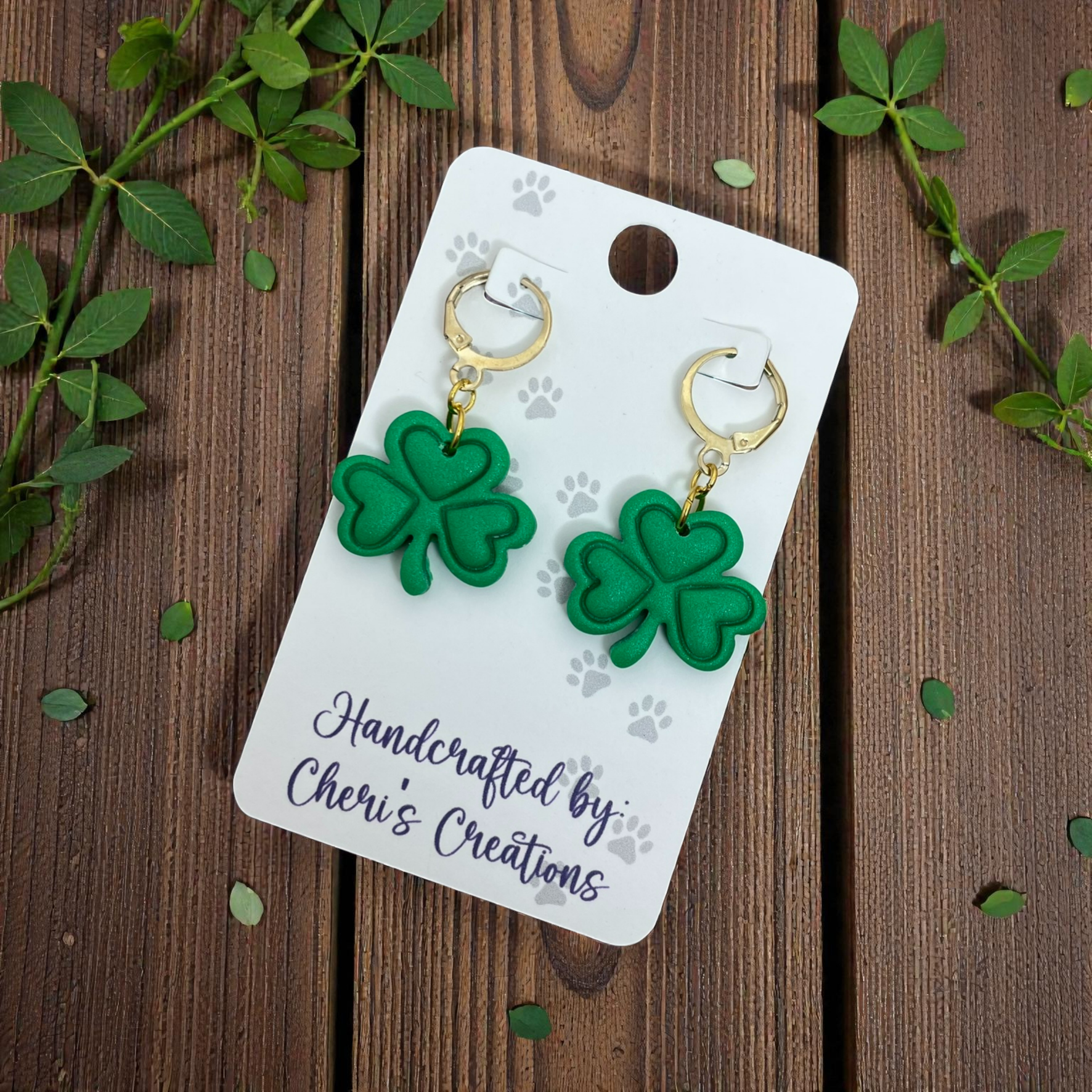 Mini Heart Clover Dangle Earrings – Handmade Polymer Clay Earrings