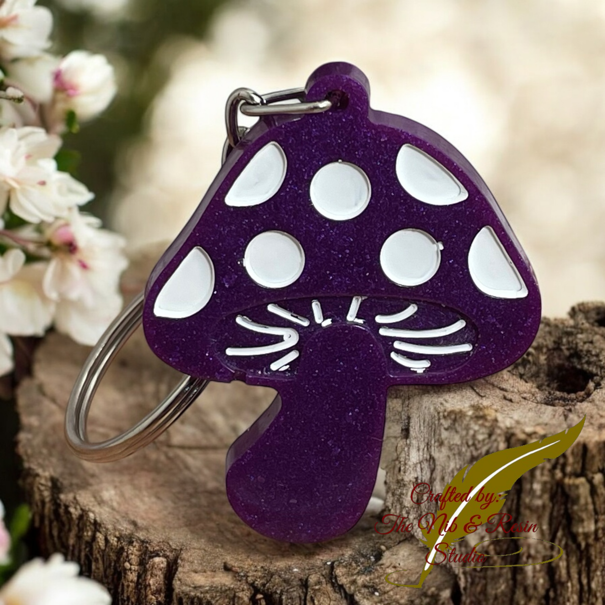 Mini Mushroom Keychain – Purple Rose Mica Resin Mushroom Keychain