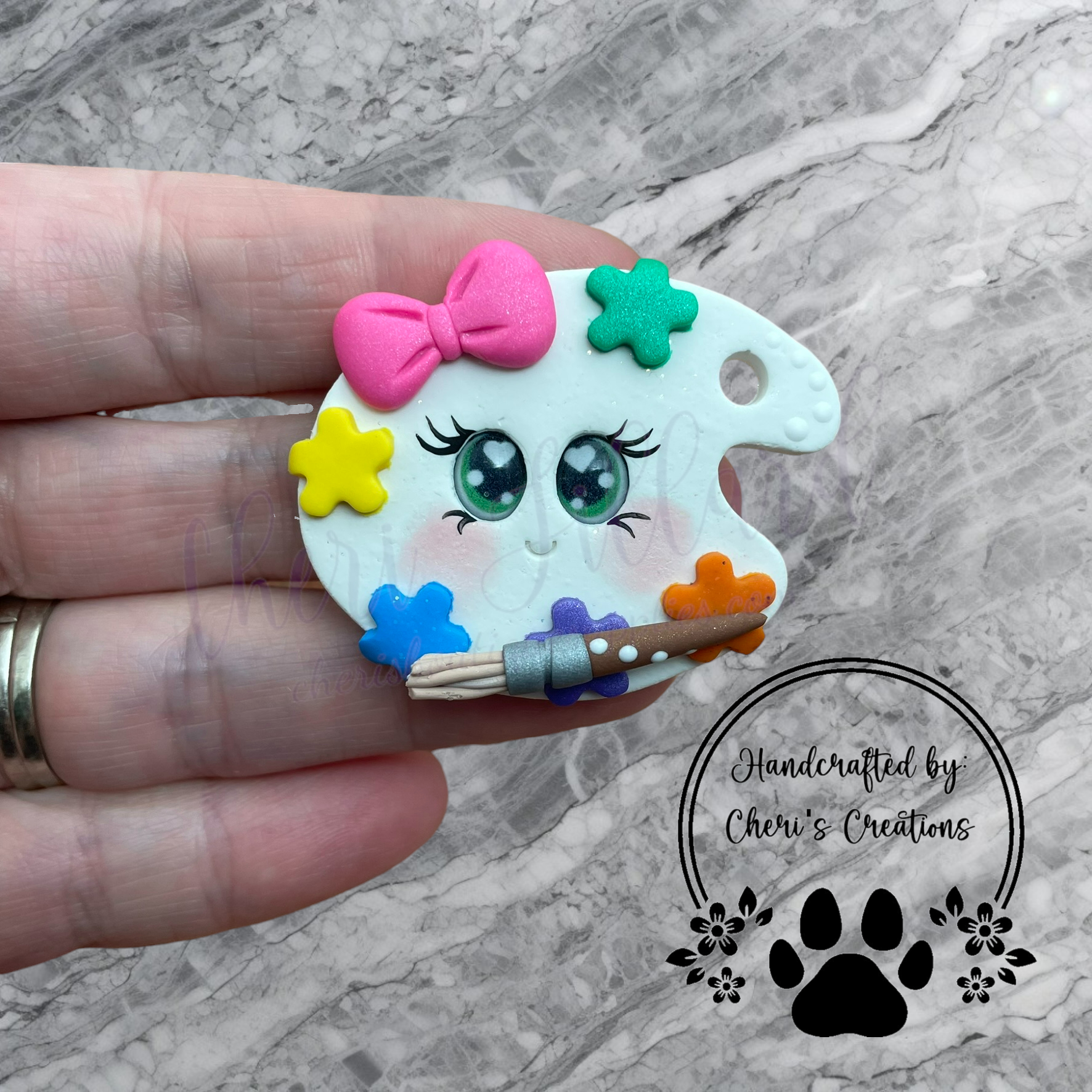 Paint Palette Bow Center – Handmade Polymer Clay Embellishment