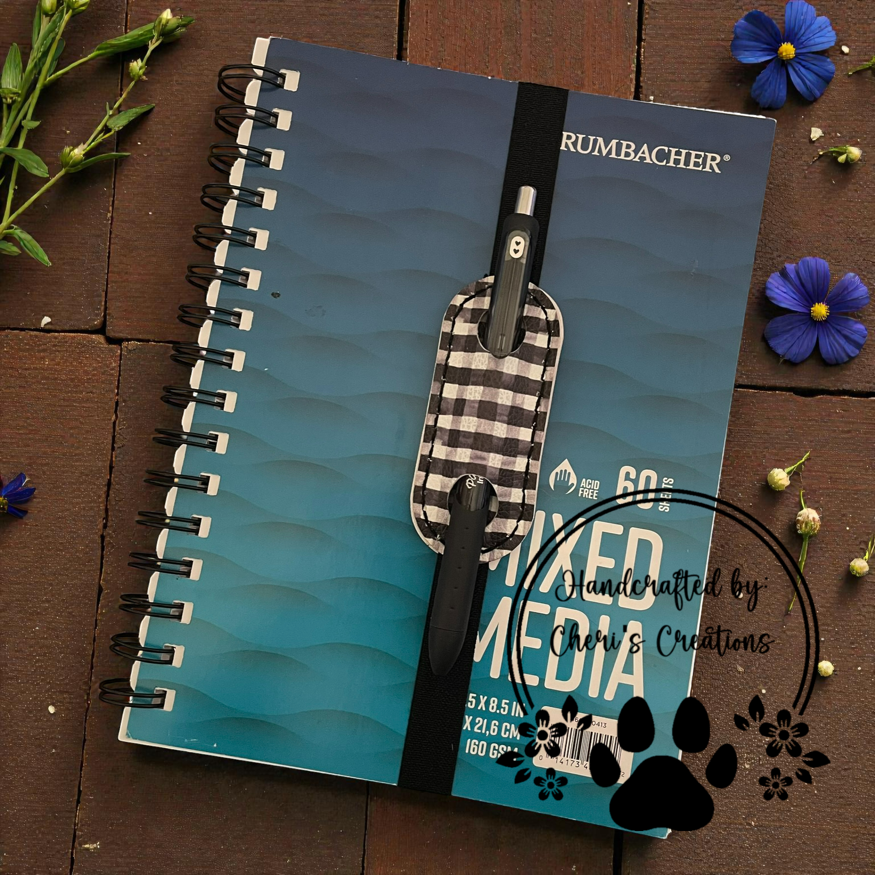 Pen Holder - Black Gingham Elastic Pen Bookmark