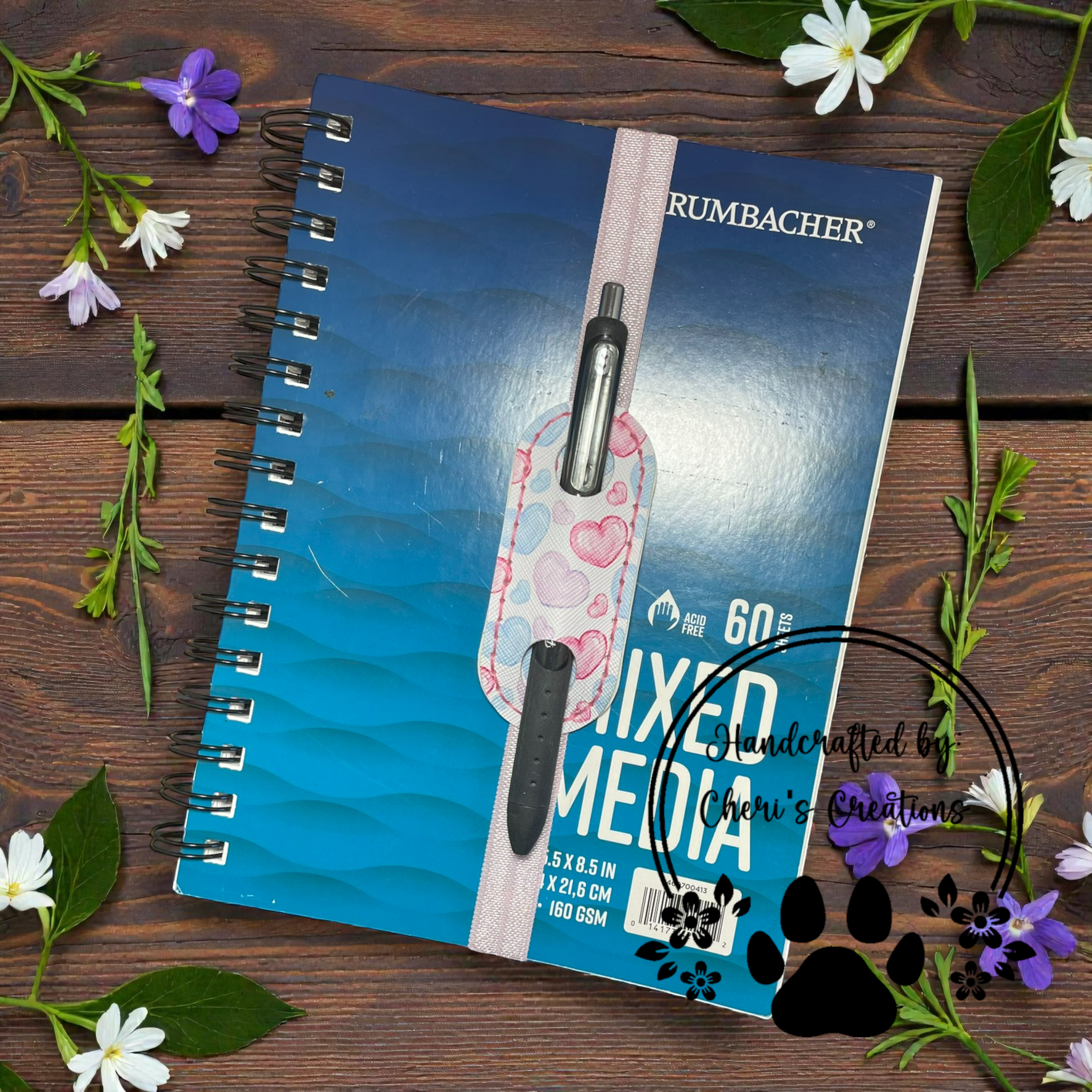 Pen Holder - Pastel Hearts Elastic Pen Bookmark