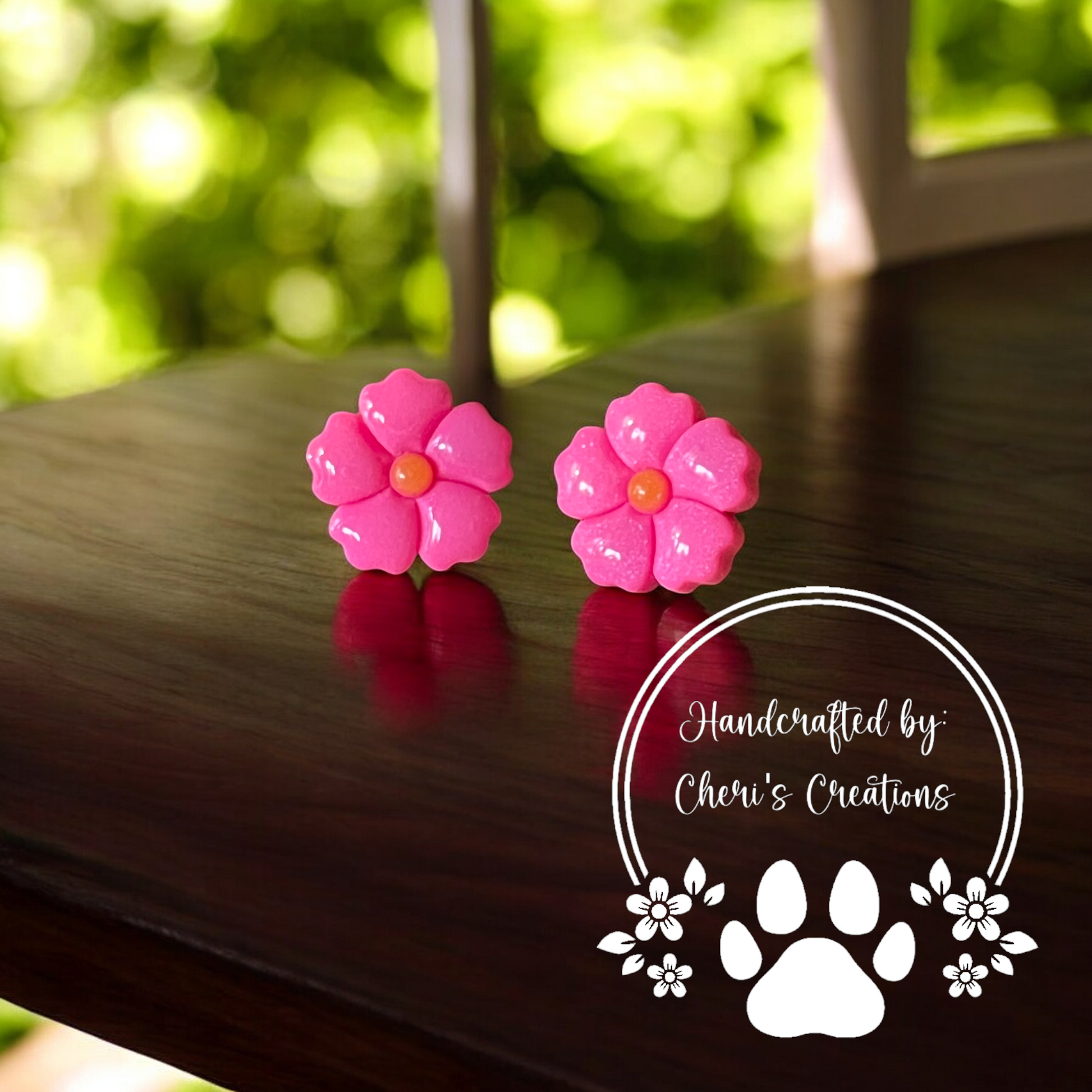 Pink 5 Petal Flower Polymer Clay Stud Earrings