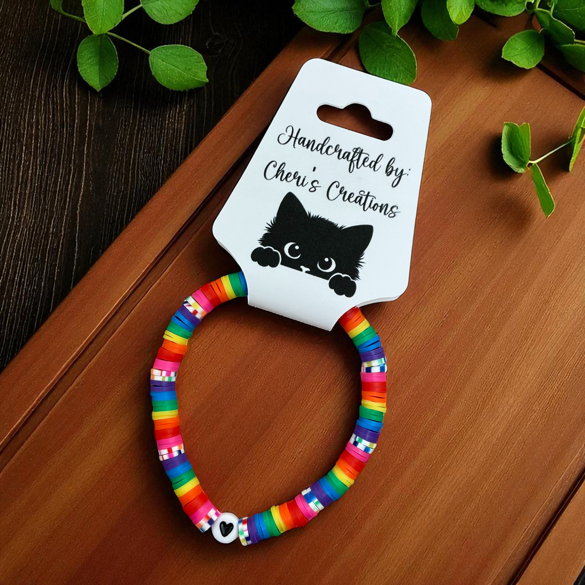 PRIDE Heart Heishi Bead Bracelet – Handmade Stretch Bracelet