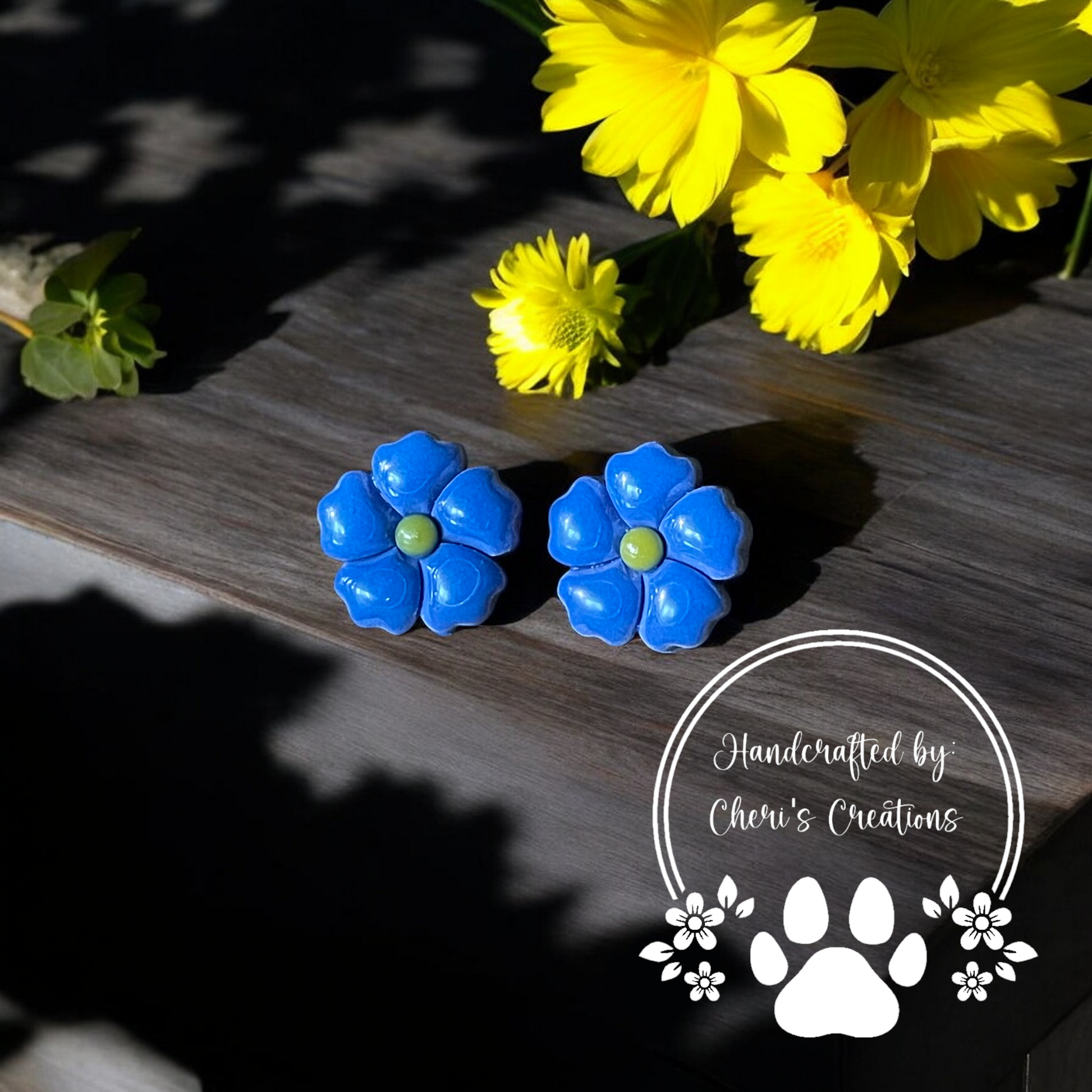 Navy Blue 5 Petal Flower Polymer Clay Stud Earrings