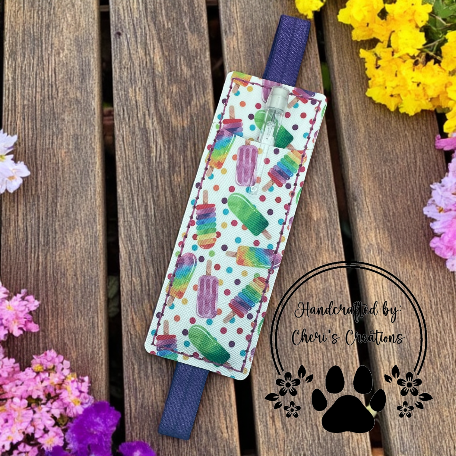 Add a splash of summer fun to your stationery with this handmade, handstitched faux leather pen and pencil organizer! Featuring cheerful rainbow popsicles and playful polka dots, this design is as sweet as a sunny day and perfect for brightening up your favorite notebook, journal, or tablet.