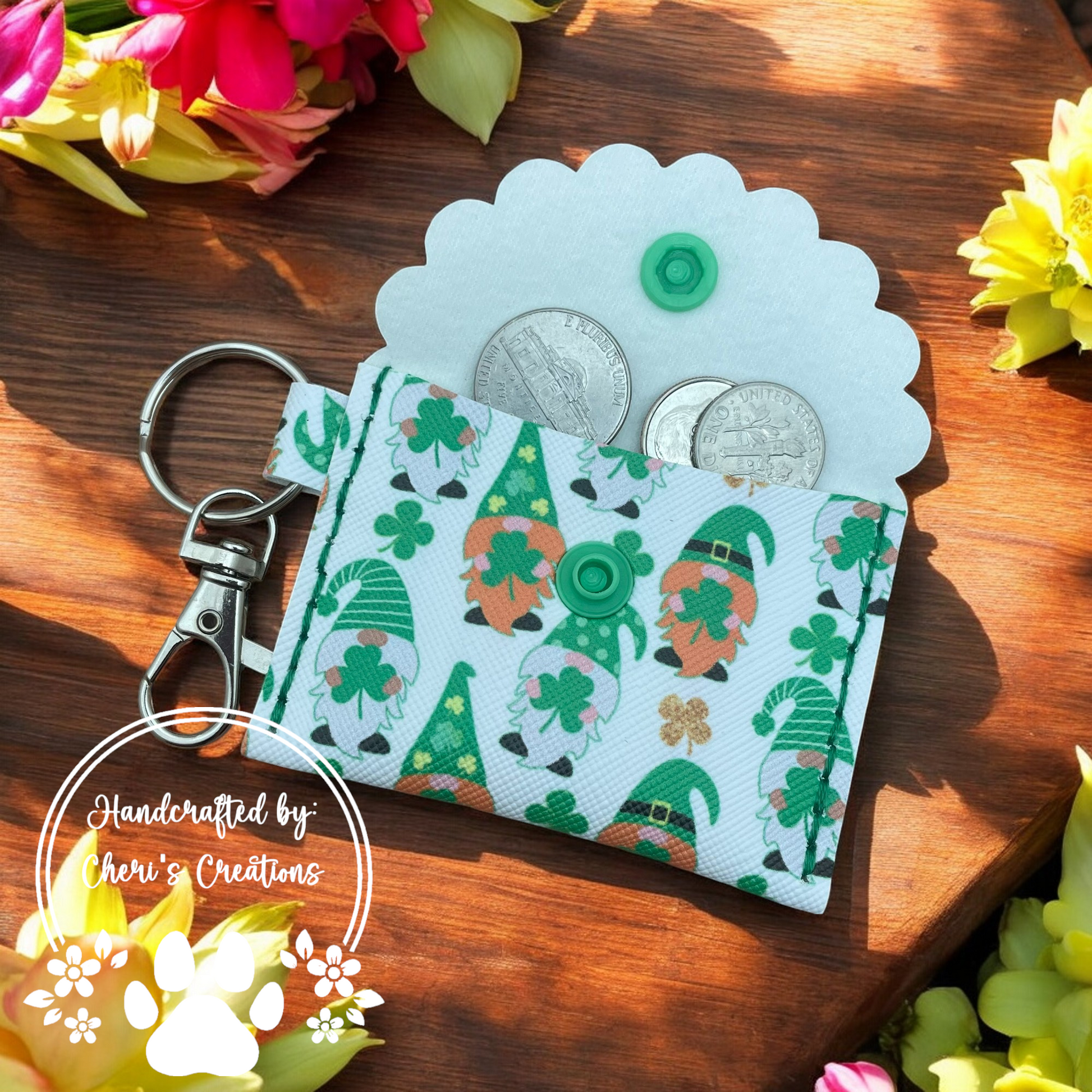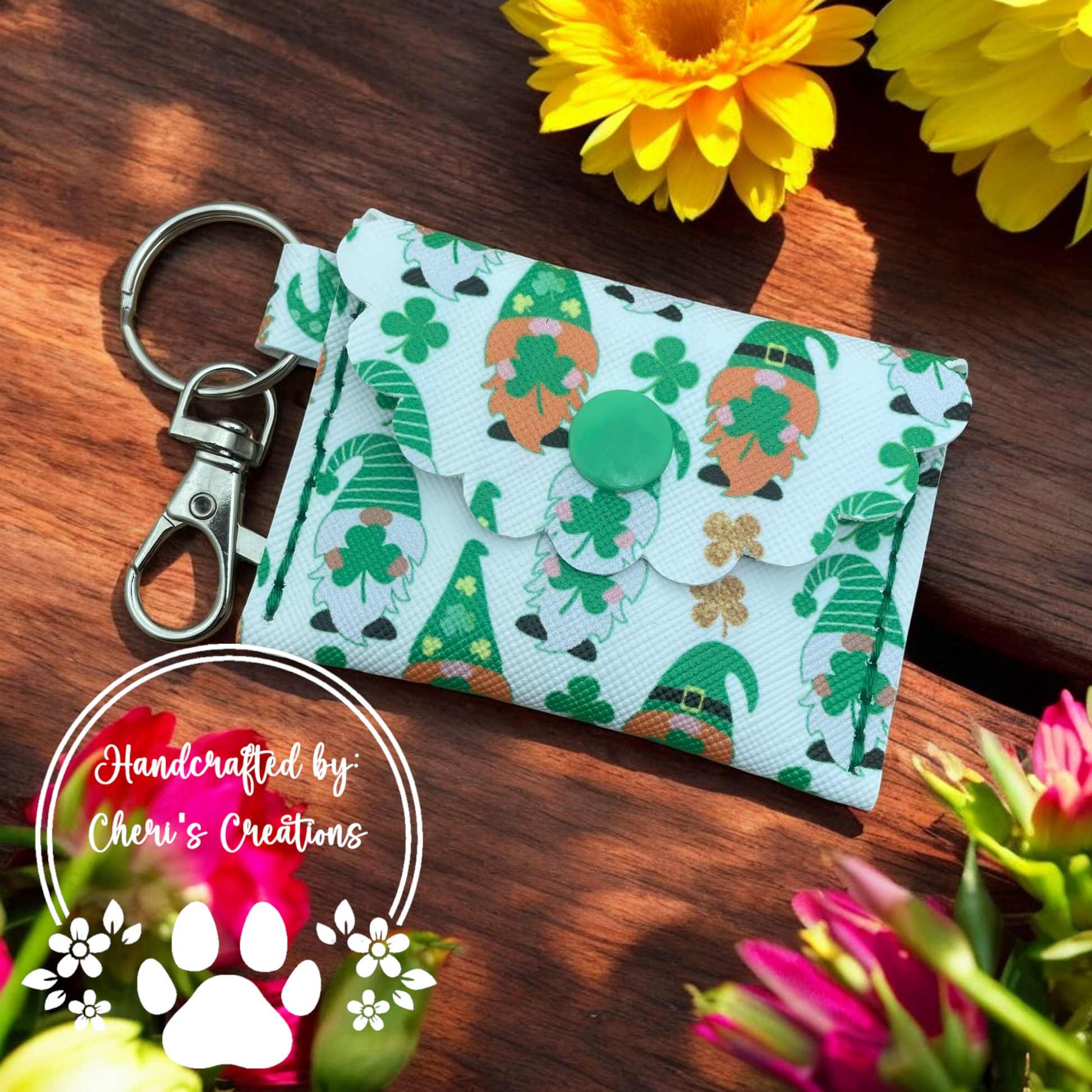 Celebrate a touch of luck and charm with this Leprechaun Gnomes Faux Leather Mini Wallet! Adorned with playful leprechaun gnome designs, this wallet brings a bit of whimsy to your essentials. Made from durable faux leather, it’s compact yet spacious enough to securely hold cash, change, or small keepsakes. The secure snap closure keeps everything safe, while the attached keychain makes it easy to clip onto your bag, keys, or belt loop for effortless on-the-go access. Perfect for adding a festive and practical accessory to your collection, this mini wallet is as charming as it is functional!