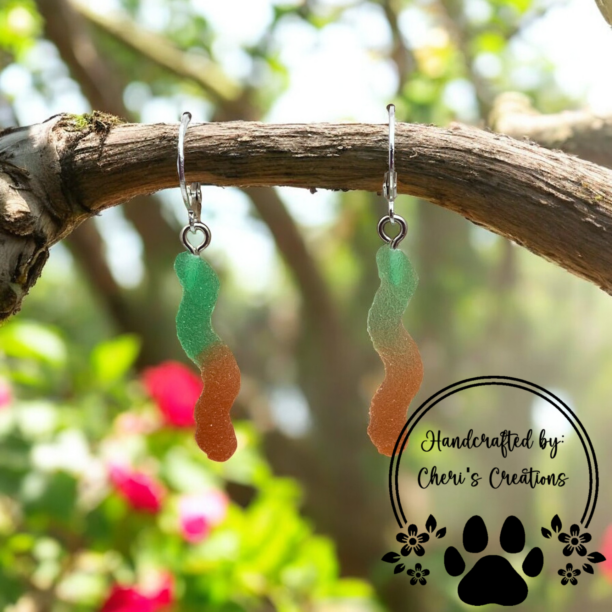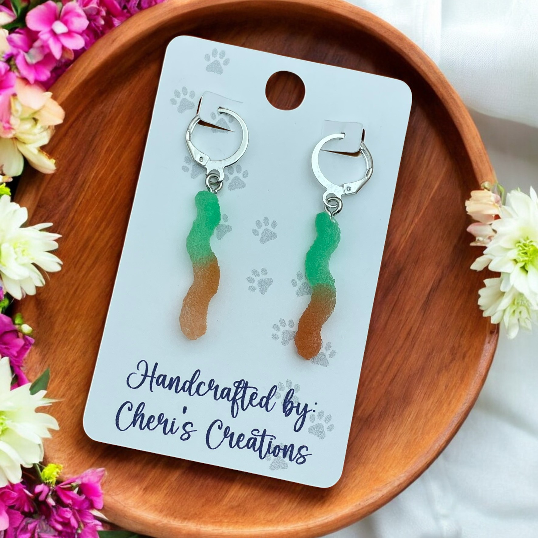 Retro Green & Orange Gummy Worm Acrylic Dangle Earrings