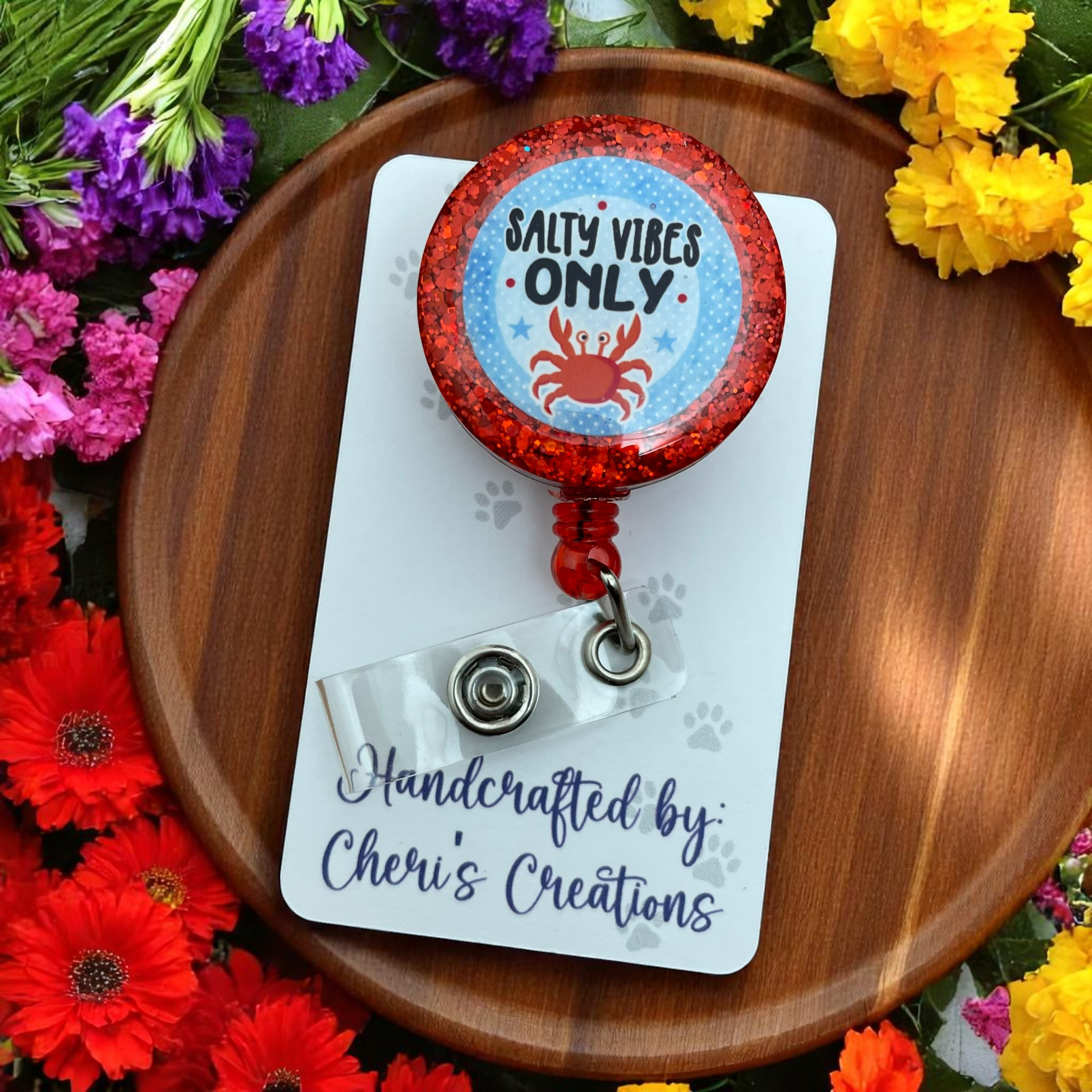 Salty Vibes Only Badge Reel – Cute Beach Themed ID Holder for Nurses, Teachers & Office Staff
