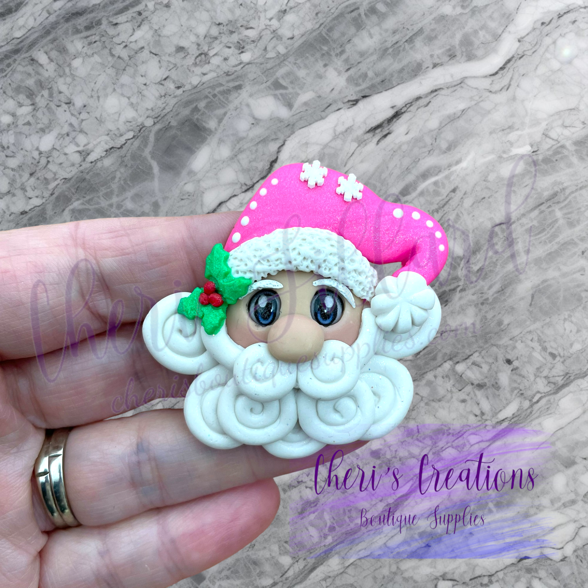 Santa Face with Pink Hat Polymer Clay Embellishment