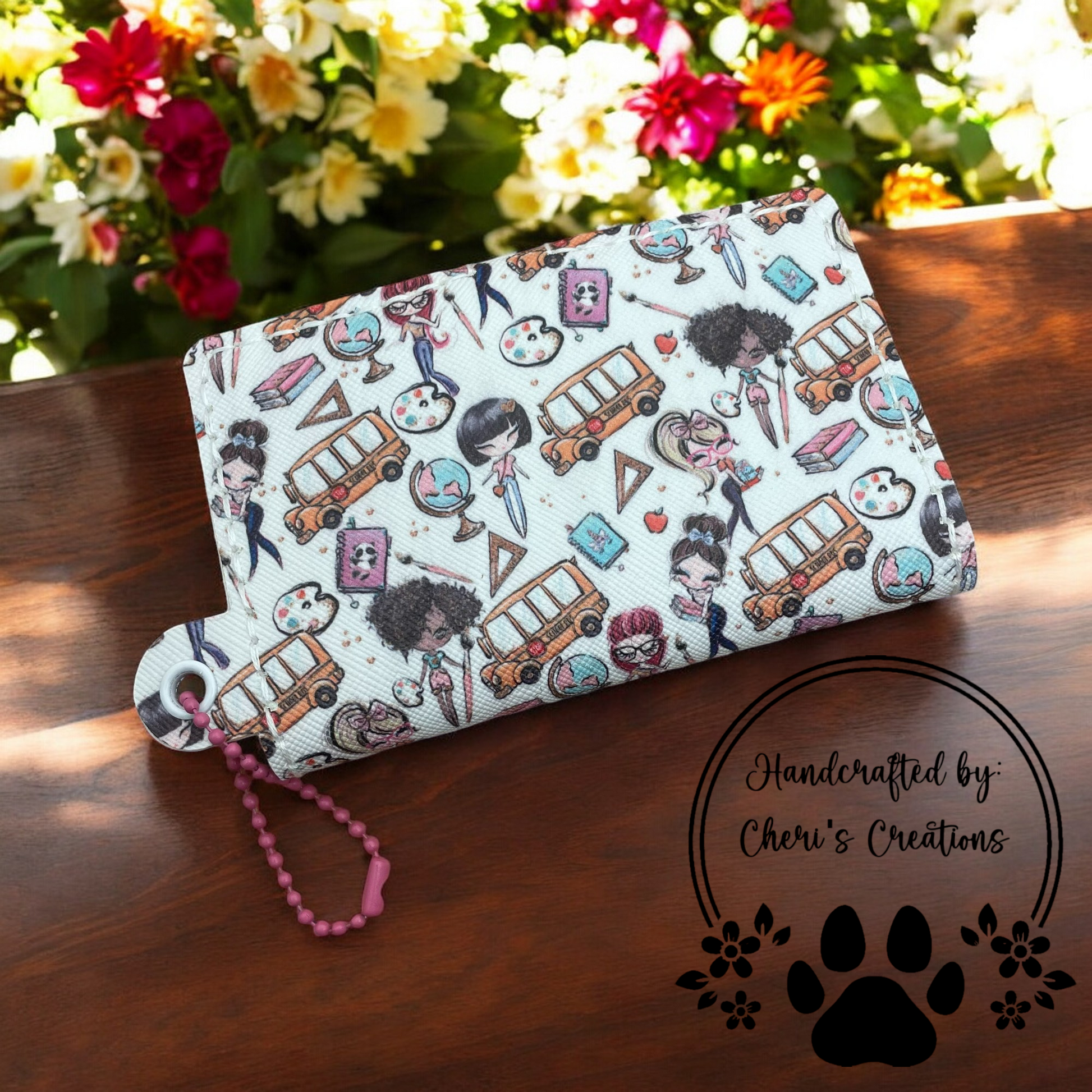 Show off your back-to-school spirit with this fun School Girls Back to School Coin and Card Wallet. Featuring an adorable design of school girls and school buses, this wallet is the perfect accessory for anyone who loves a playful, school-themed look. It comes with secure snap closures to keep your cards and coins safe, along with a ball chain keyring for easy attachment to your bag or keys. Compact, functional, and full of charm, it’s the ideal way to carry your essentials while celebrating the school season!